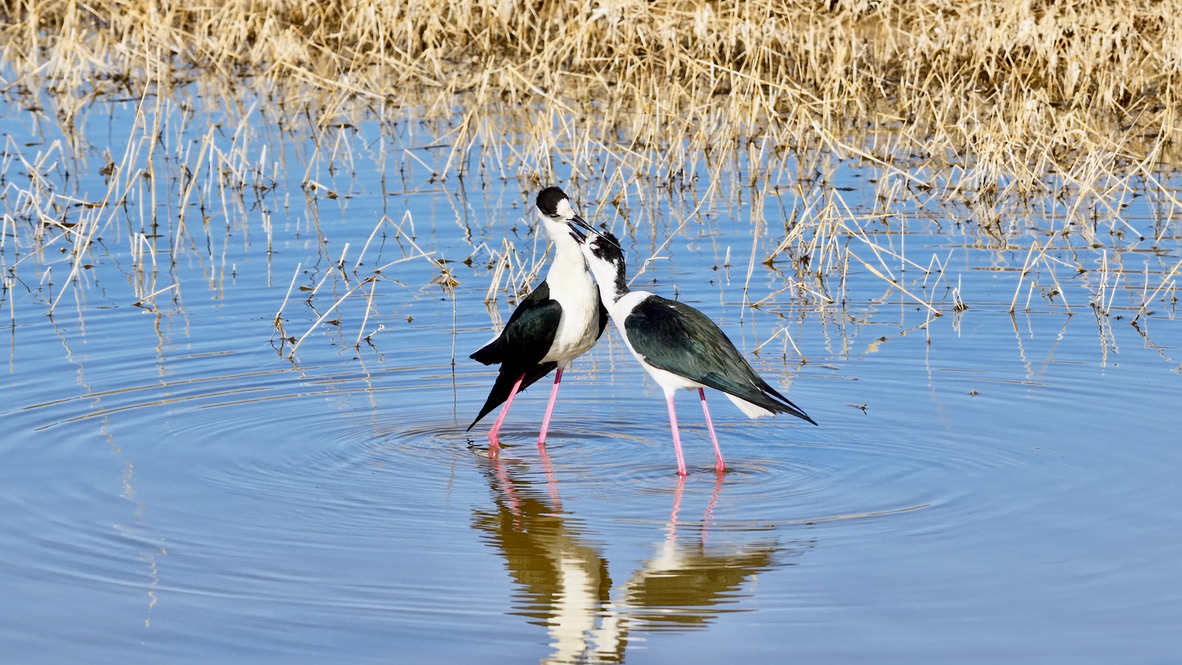 A photographer captured what appeared to be a "kissing" moment between two black-winged stilts along the Sanggan River in Datong, north China's Shanxi Province. But it's not what you think. Click the video to find out more.