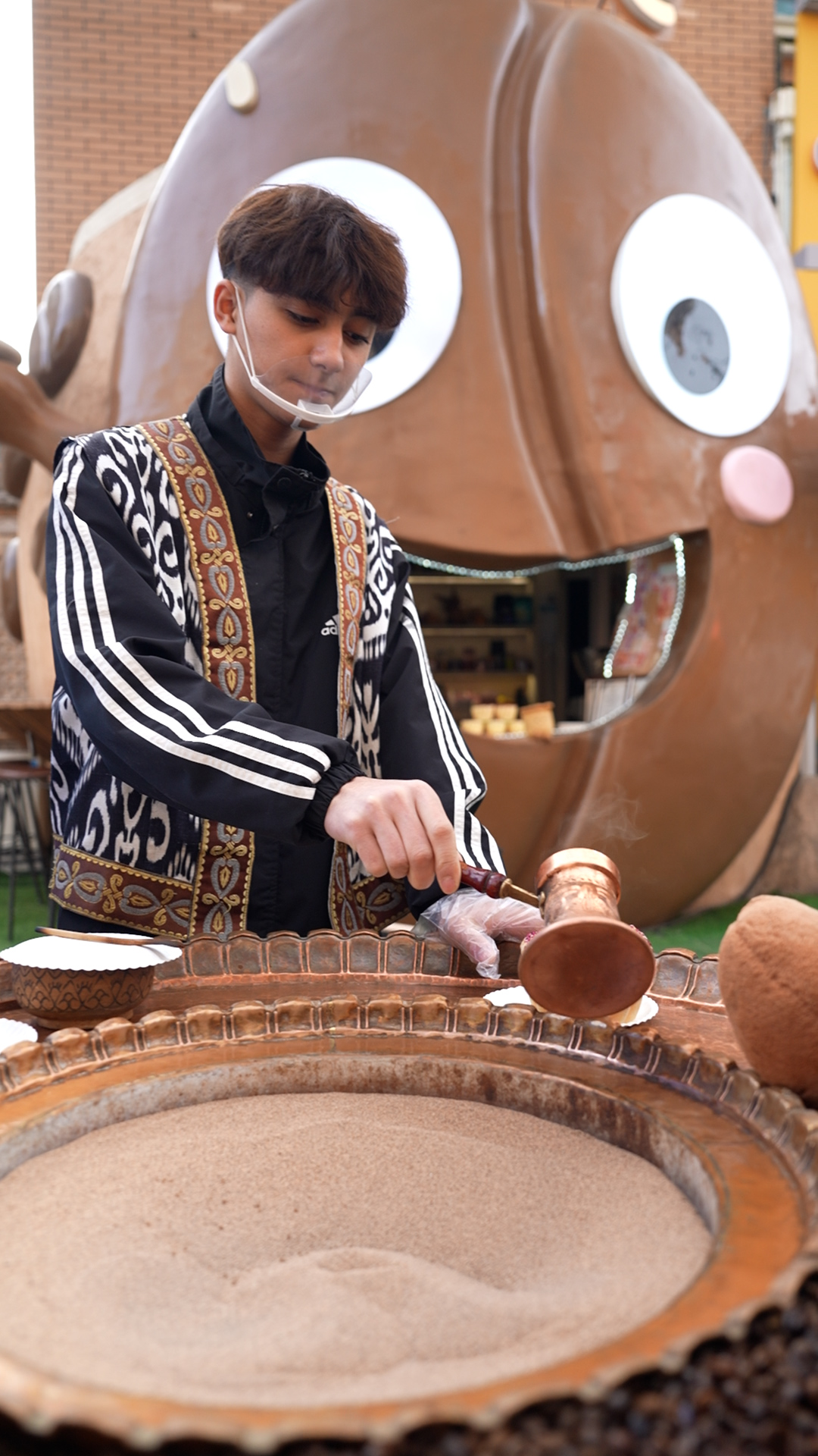At the Urumqi International Grand Bazaar, coffee comes with a local twist.