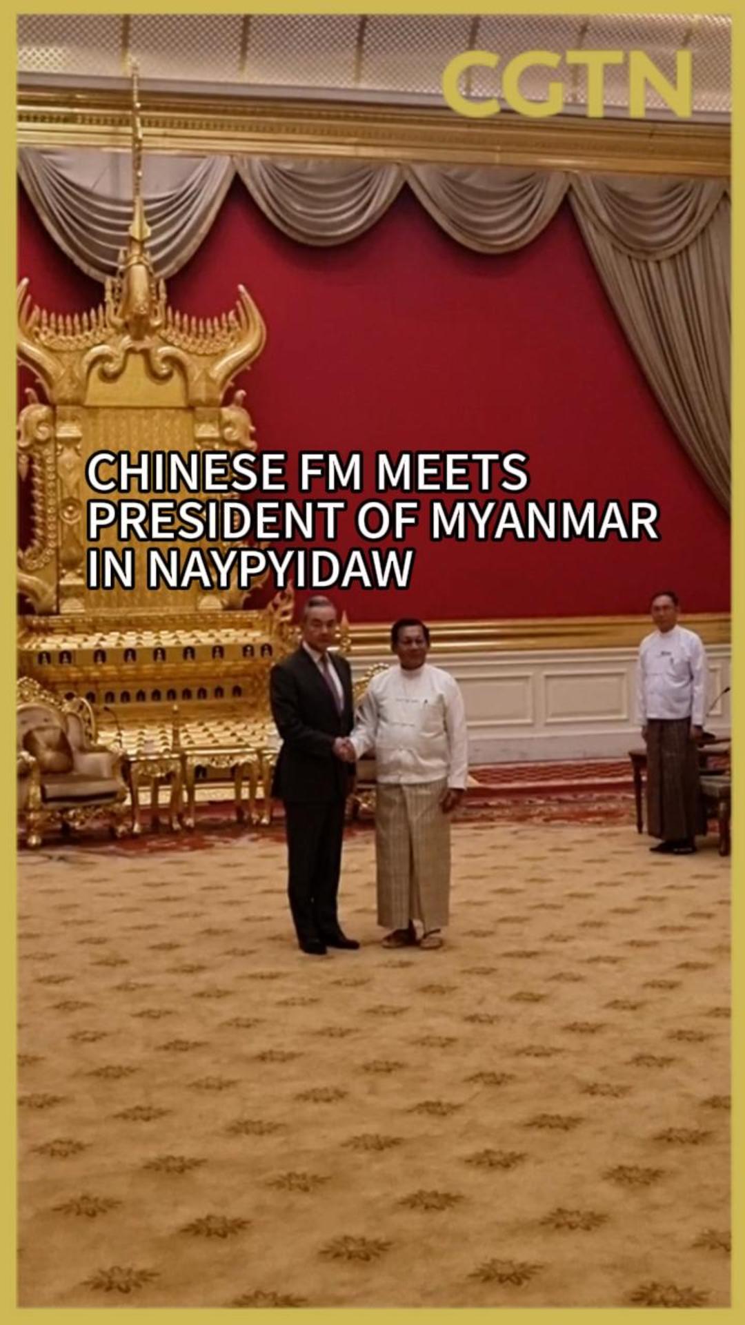 Wang Yi, a member of the Political Bureau of the Communist Party of China Central Committee and Minister of Foreign Affairs, met with Myanmar's President Min Aung Hlaing at the President's Office in Naypyidaw.