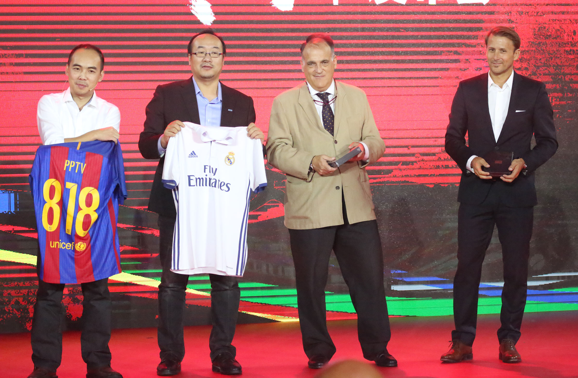 PPTV press conference after acquiring live rights for games from Spain's La Liga in China. Photo: CFP