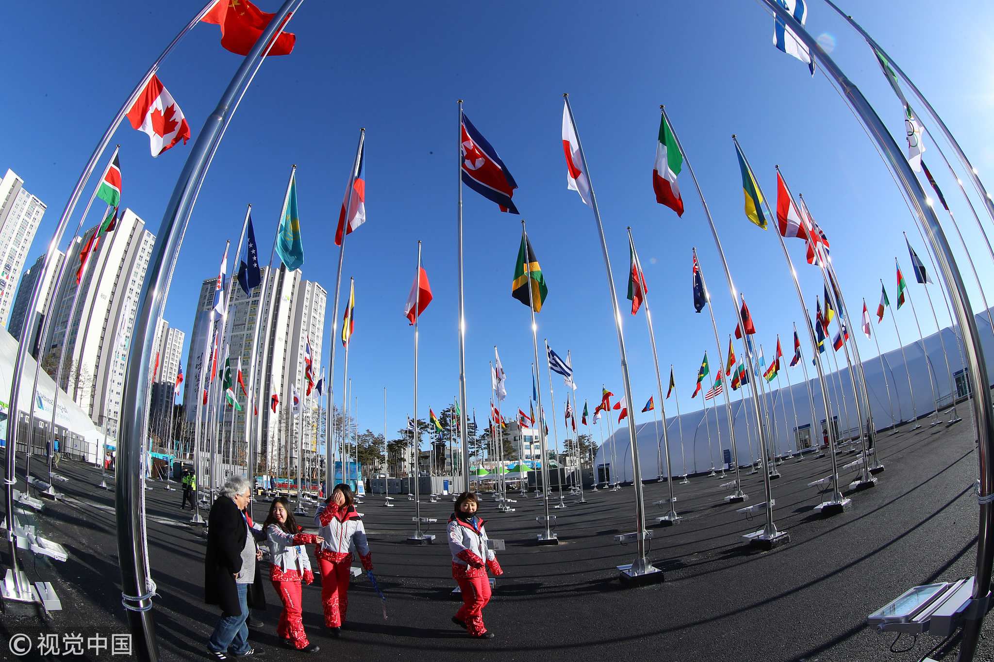The Olympics athletes village in Gangneung, where the DPRK's national flag has been raised. /VCG Photo