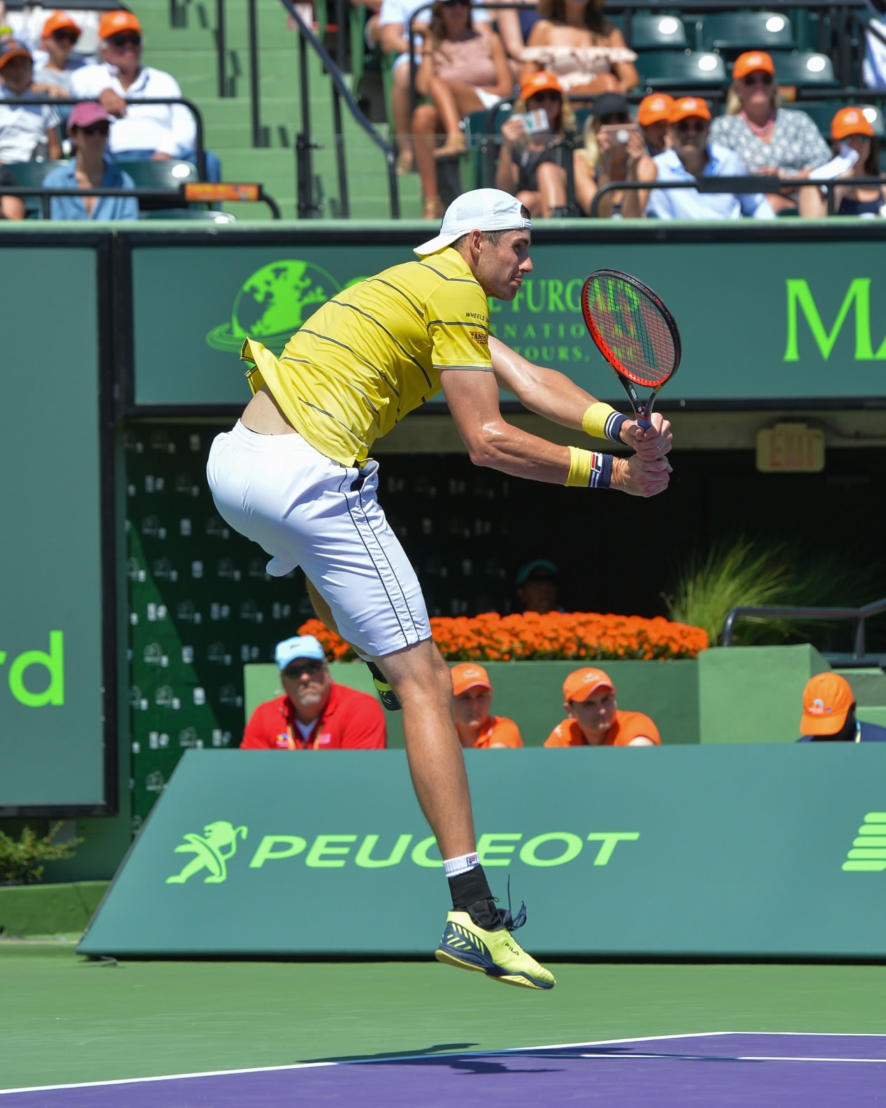 John Isner (USA) in action during the finals of the 2018 Miami Open. /VCG Photo