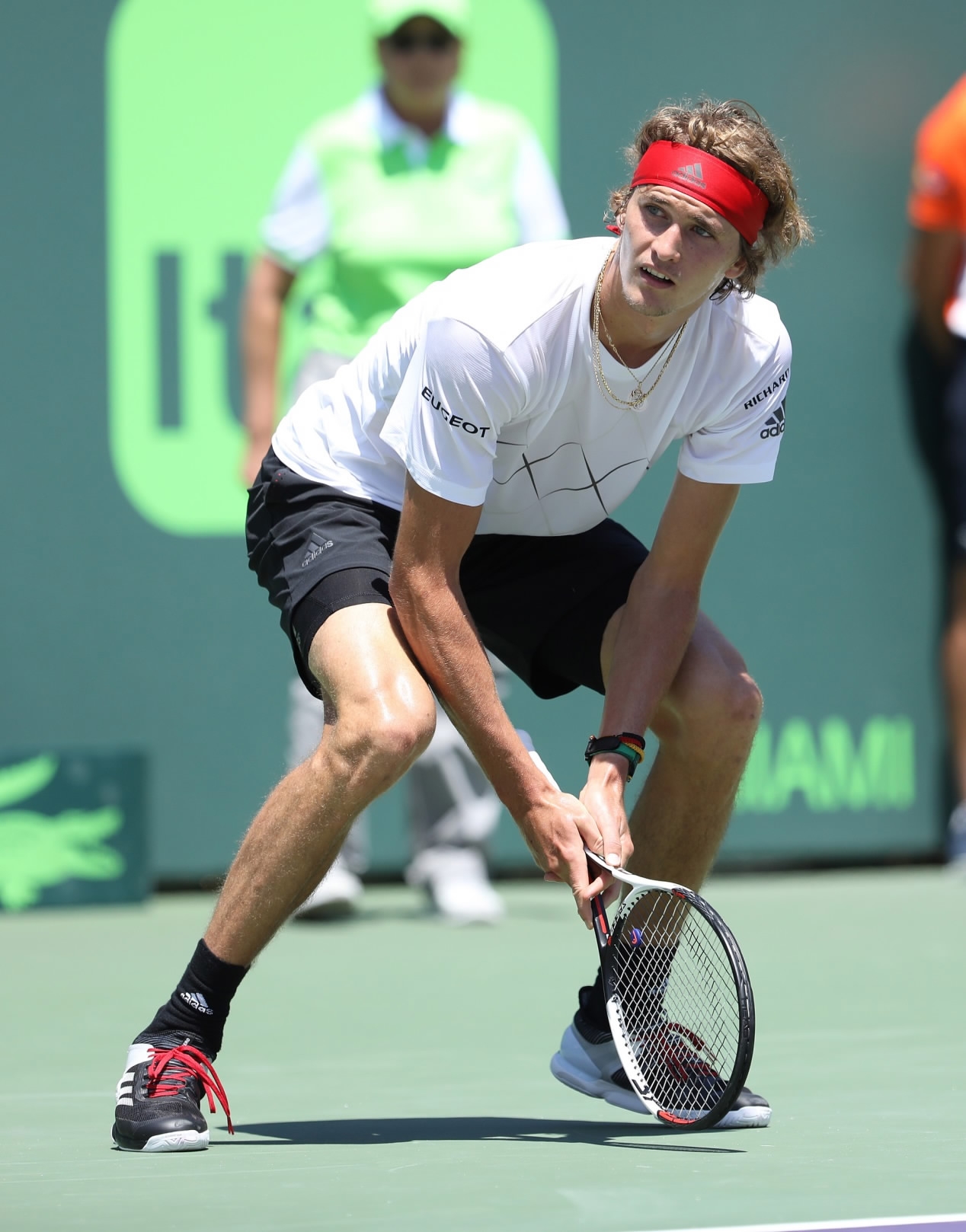 Alexander Zverev of Germany reacts against John Isner of the United States in the mens final match during the Miami Open. /VCG Photo