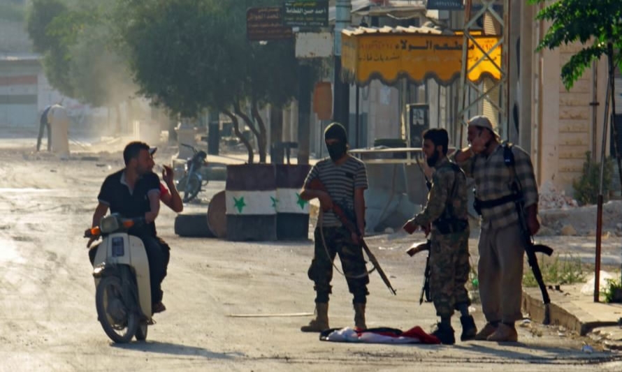Rebel fighters from the jihadist group Jund al-Aqsa, later known as Liwa al-Aqsa, man a checkpoint in the town on Taybat al Imam, Syria, August 31, 2016. /Reuters