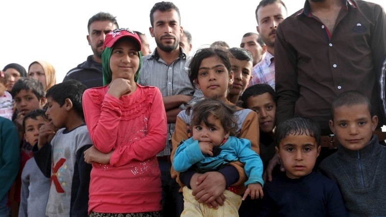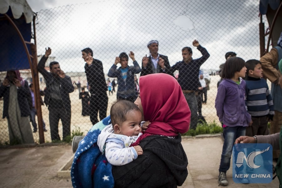 A Syrian Kurdish refugee and her child arrive in Kobane, Syria, April 3, 2015. /Xinhua Photo