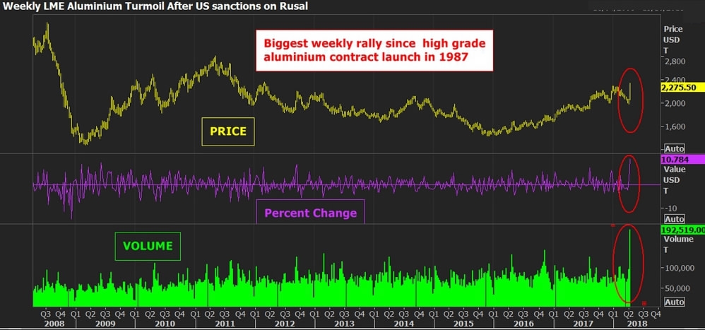 The prices of aluminum had risen by over 20 percent to 2,522 dollars a tonne as of Wednesday on the London Metal Exchange (LME), as fears for supply shortage grow, given that Rusal – the world's second-largest aluminum producer – accounted for more than six percent of global aluminum supplies last year.