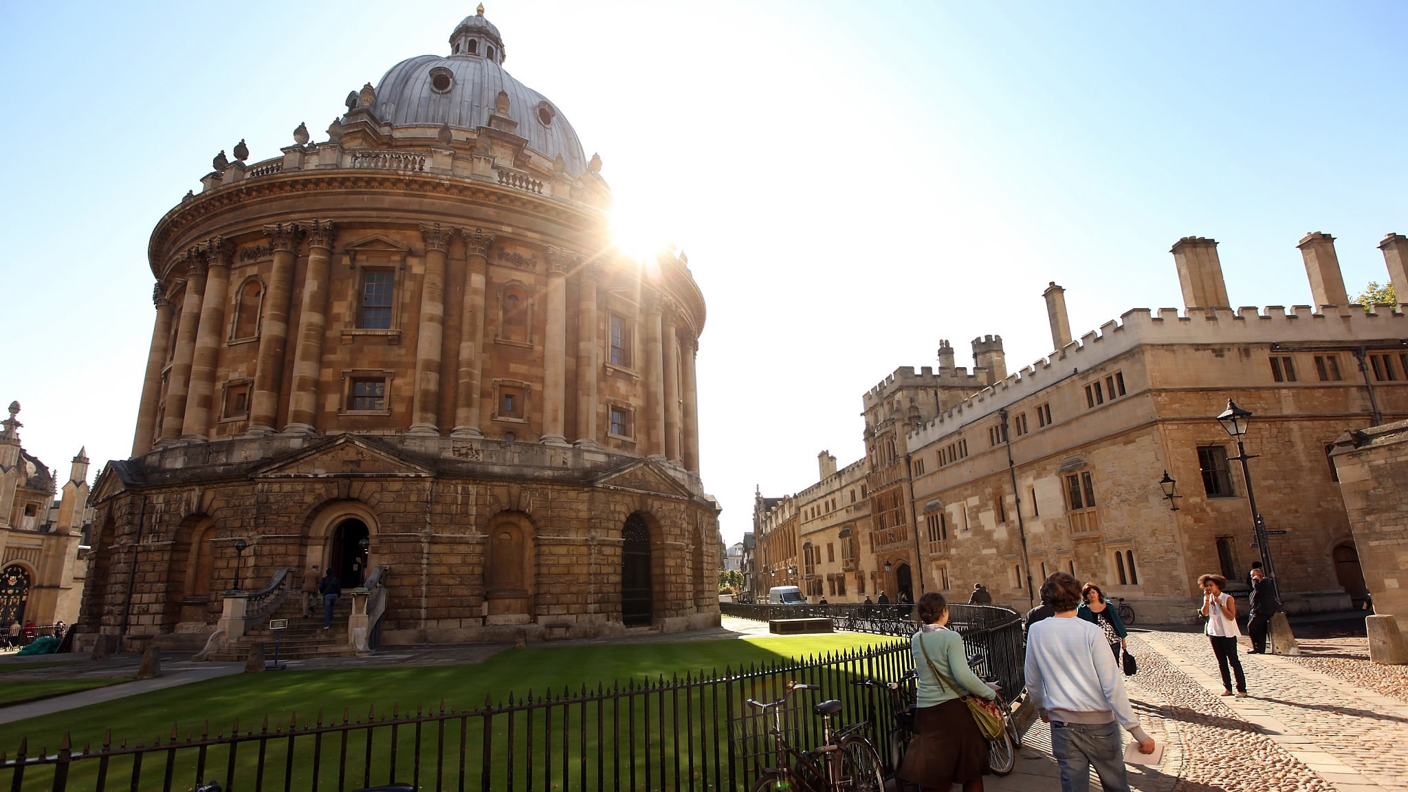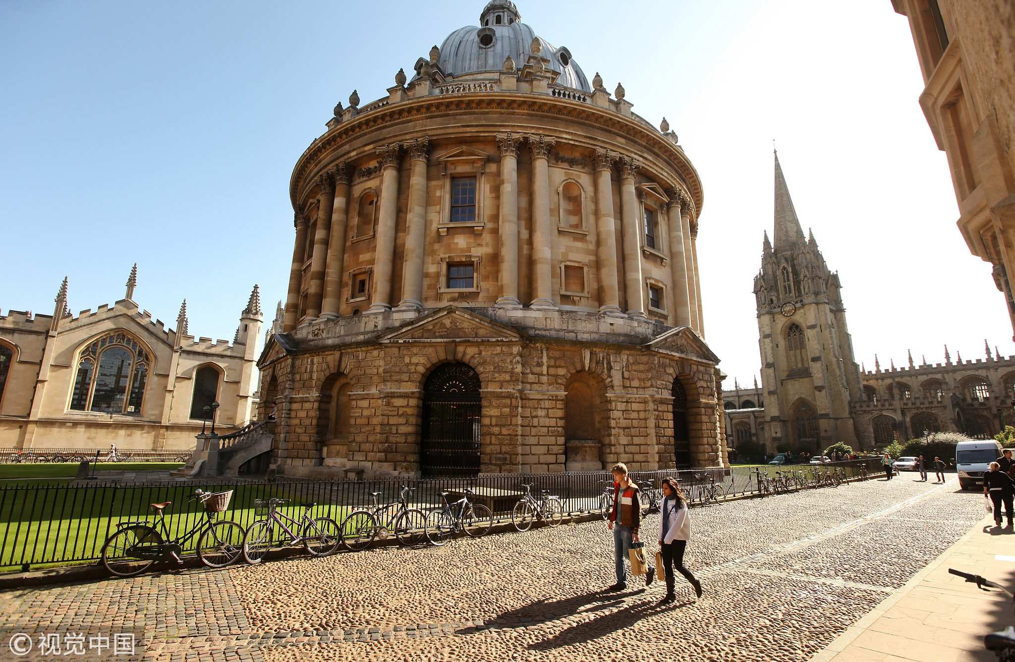 Students walk past the Radcliffe Camera building at Oxford University. /VCG Photo