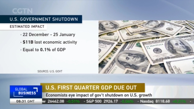And we'll find out how much it cost the U.S. economy when economic growth figures for the first quarter of the year are released. The shutdown triggered by a funding dispute for President Trump's border wall began in December and ended at the end of January. The U.S. government's budget office estimated the shutdown period in December would equate to eight billion dollars in lost economic activity, while in January, it would be 11 billion. Overall about one-tenth of one percent shaved off GDP.