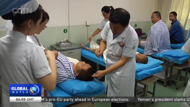 Around the world, every six seconds someone dies of a stroke, according to the World Health Organization. And in China, strokes are the number one cause of death and disabilities among adults, with fatal strokes on the rise. What worries doctors even more is the increase in China's youth now suffering strokes. CGTN reporter Hu Chao takes a look. 35-year-old Zhou Wei had a stroke last winter. It paralyzed the left side of his body and left him unable to talk. He has spent the last several months in rehabilitation at a local hospital in Taiyuan, capital of north China's Shanxi Province. After five months of acupuncture and other treatments, now he's able to talk and move a bit again.