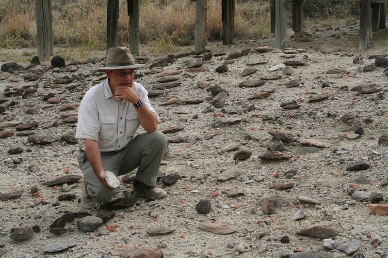 Richard Potts with artifacts in the Olorgesailie Basin in southern Kenya. /AP Photo