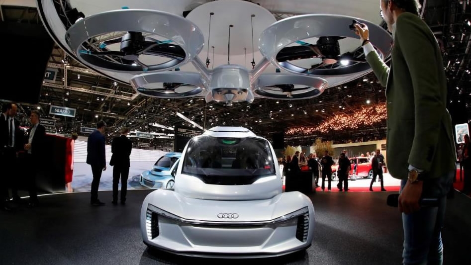 The "pop.up next" concept by Audi, Airbus and Italdsign is pictured during the 88th Geneva International Motor Show in Geneva, Switzerland, March 6, 2018. /Reuters Photo