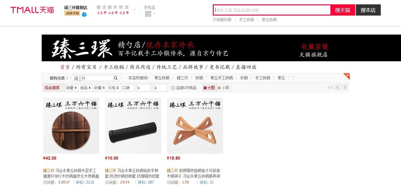 No iron products are shown at "Zhensanhuan" store on Tmall as of Sunday evening. /Screenshot from Tmall