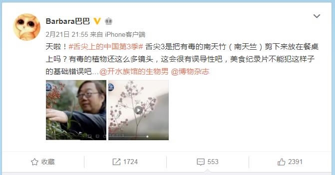 At the same time, food blogger @barbarababa questioned whether it is appropriate to give a close-up shot of the poisonous plant nandina in a food program.