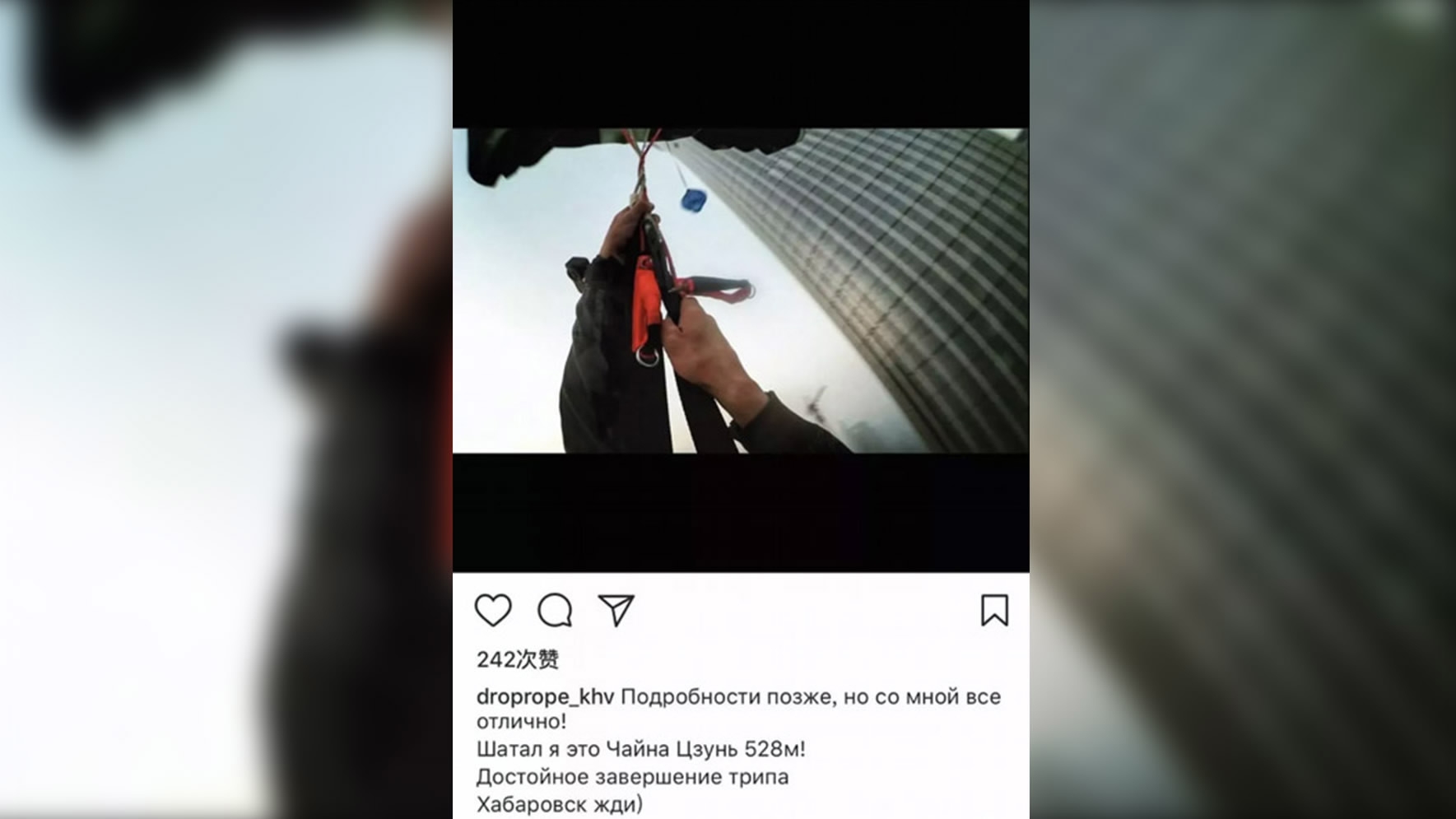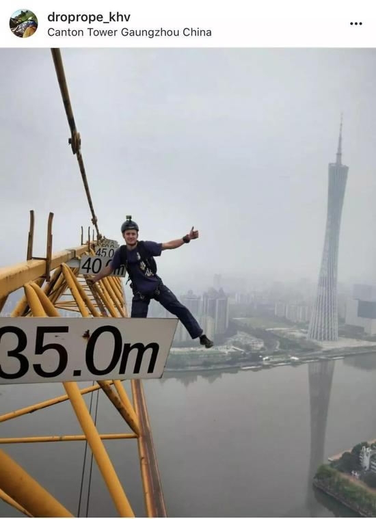 The Russian previously parachuted from high buildings in other Chinese cities such as Guangzhou, and uploaded videos on social media. /Sina Photo