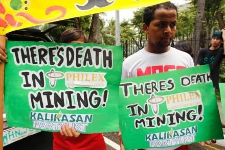 Activists against large-scale mining display placards during a protest in Manila. The mining sector accounts for one of the Philippines major exports. /Reuters Photo
