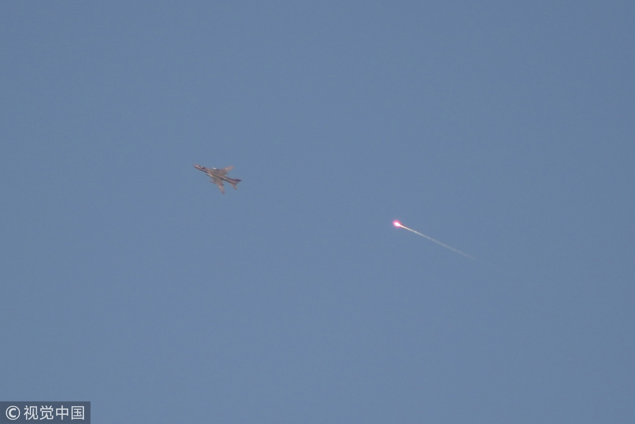 Fighter jet of Syria military carries out an airstrike on Sifoniye town of Eastern Ghouta, Damascus, Syria, on February 27, 2018. /VCG Photo