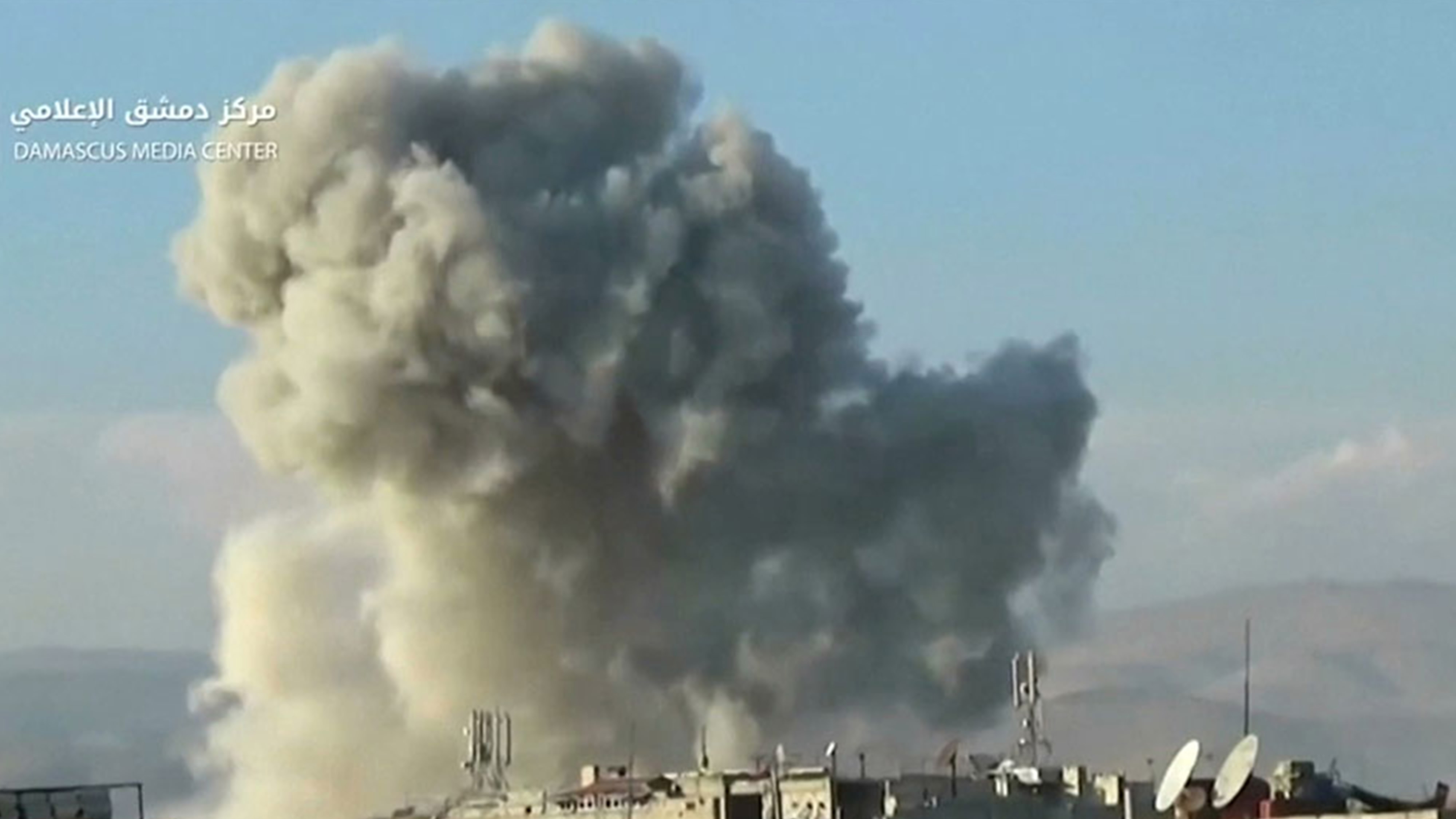 Smoke rises after an airstrike on Sifoniye town of Eastern Ghouta, Damascus, Syria, on February 27, 2018. /VCG Photo