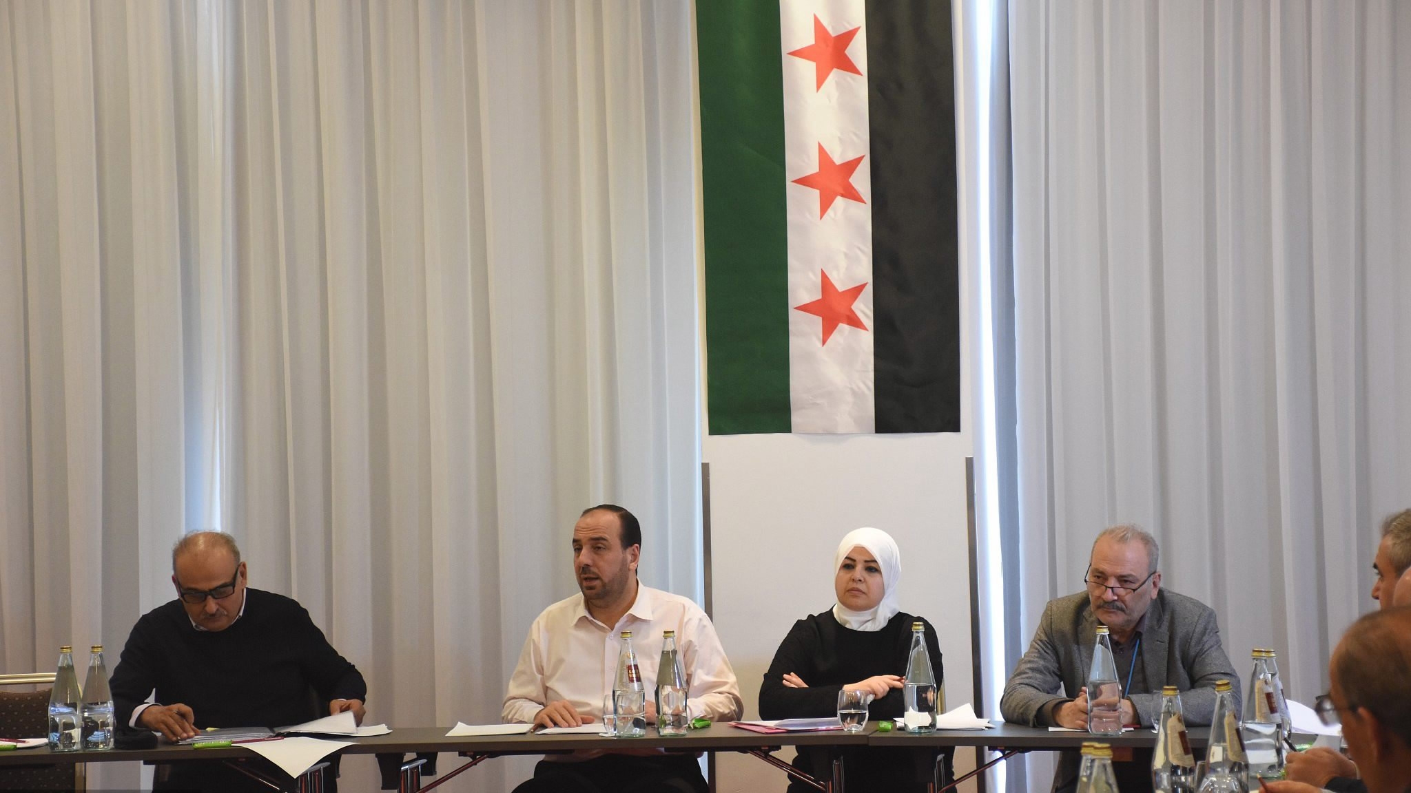 Syria's opposition High Negotiations Committee (HNC) leader Nasr al-Hariri (2nd L) attends a meeting on Syria in Vienna, Austria, Jan. 25, 2018. /VCG Photo
