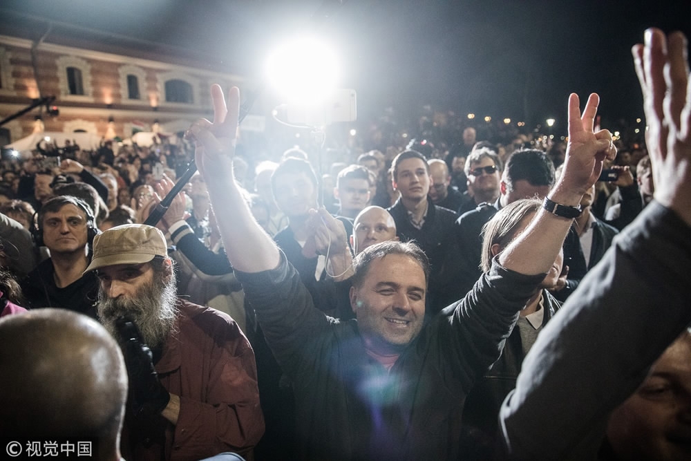 Supporters cheer as Hungary's Prime Minister Viktor Orban (not pictured) delivers a speech at the Fidesz party headquarters following results for the parliamentary elections in Budapest, Hungary, April 8, 2018. /VCG Photo