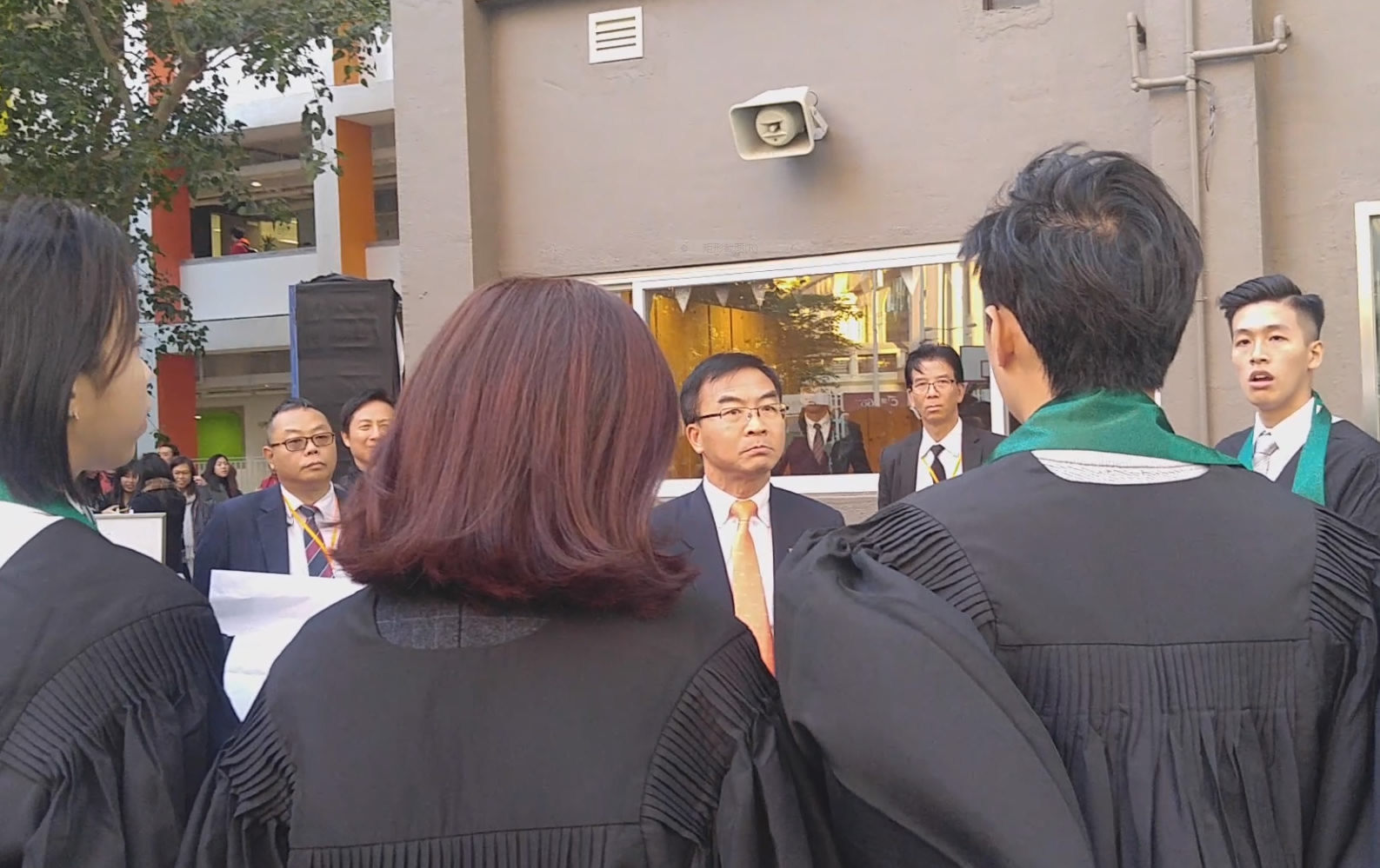 The principal of the institution, Chan Cheuk-hay, spoke to the students after the ceremony.