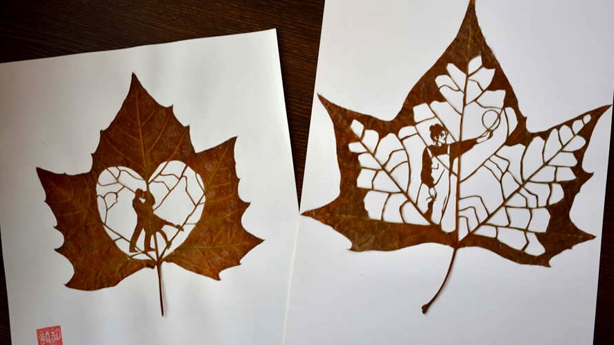 What can you do with fallen leaves? Instead of sweeping them into trash bins, Li Kai, a student from Chongqing University in southwest China, has collected piles of leaves and carved out stunning images on the feather-light canvas. /China Daily Photo
