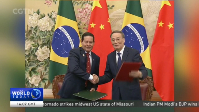 With his official visit coming to an end, Brazilian vice president Hamilton Mourao sat down with Chinese President Xi Jinping on Friday, conveying a message of goodwill from Brazil's president Jair Bolsonaro. Both sides have agreed to push forward their comprehensive strategic partnership. Briefing the media, the Chinese foreign ministry calls it a high-standard reception.