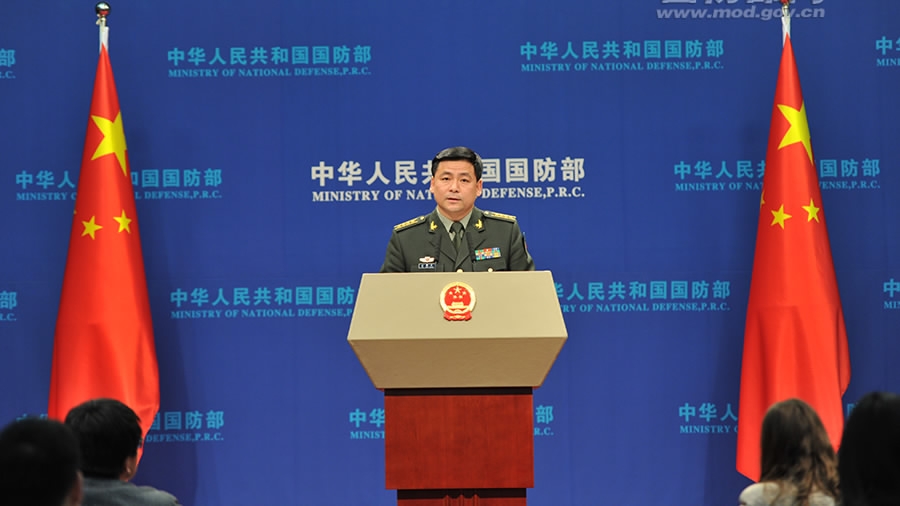 Defense Ministry spokesman Ren Guoqiang briefs media on March 29, 2018. /Ministry of Defense Photo