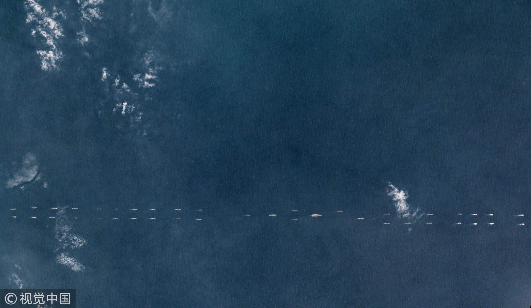 Satellite photo dated March 26, 2018, shows Chinese ships south of Hainan. /VCG Photo
