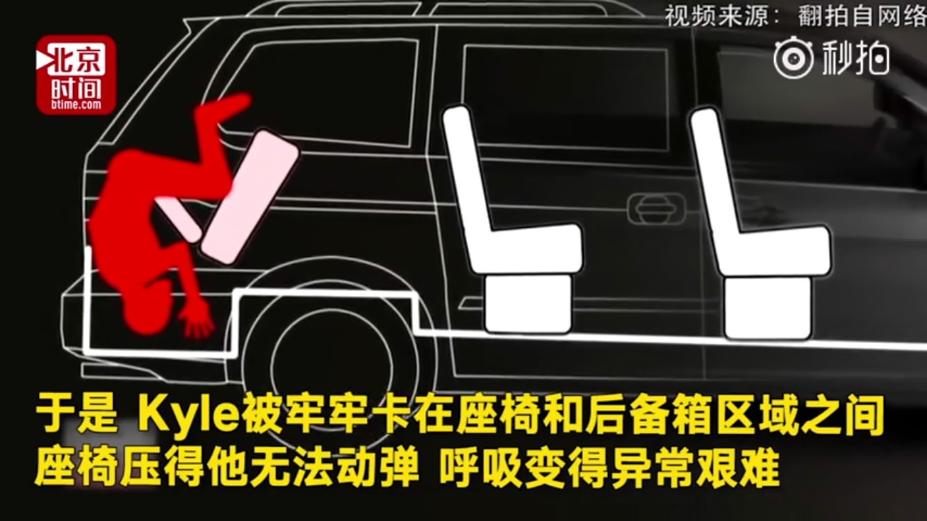 The illustration shows the teenager trapped in the car. /Screenshot from a video released by btime
