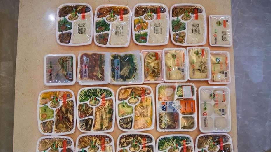 Packaged food, delivered by cold chain, can be kept for three days. These meals are prepared in a kitchen operated by China Railway Company. /VCG Photo