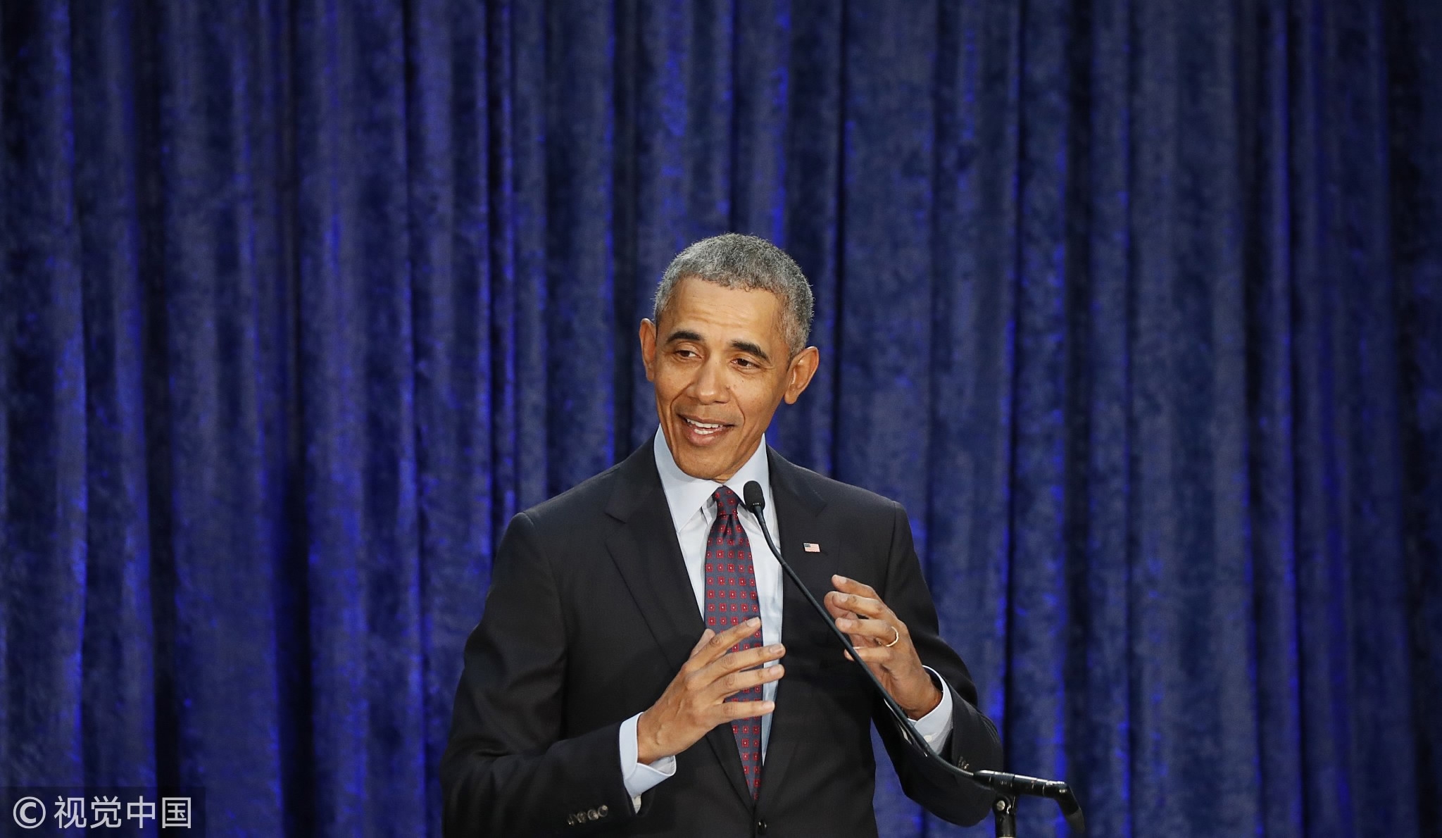 Former US president Barack Obama at an unveiling ceremony for portraits of him and his wife Michelle at the Smithsonian's National Portrait Gallery in Washington, February 12, 2018. /VCG Photo