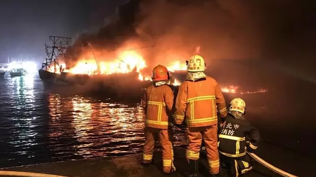 According to local media, the fire started at around 1:00 a.m. when the boat was berthed at a dock in Xinbei city in Taiwan.