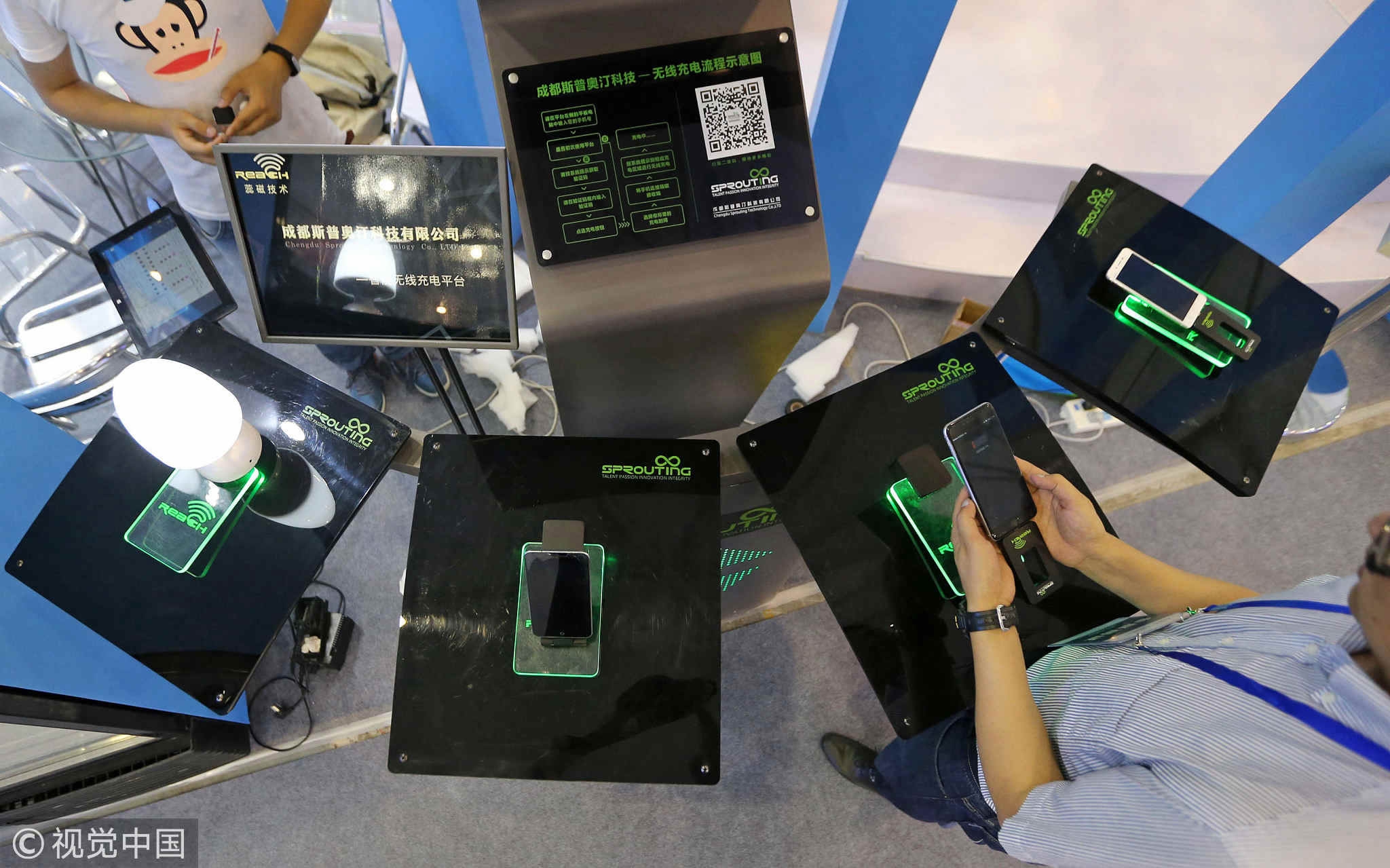 A wireless-charging platform shown at the 2016 Chengdu Global Innovation and Entrepreneurship Fair /VCG Photo