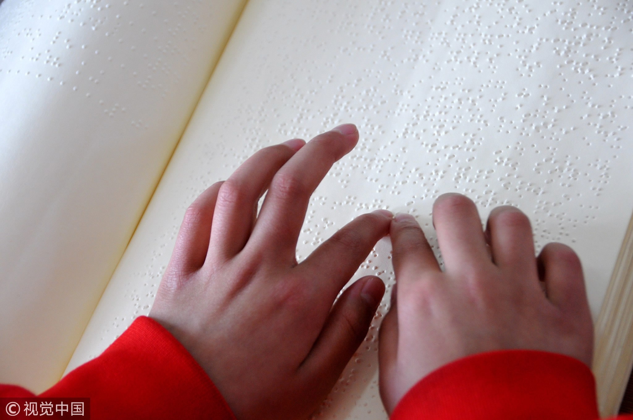 A visually impaired person reads braille. /VCG Photo