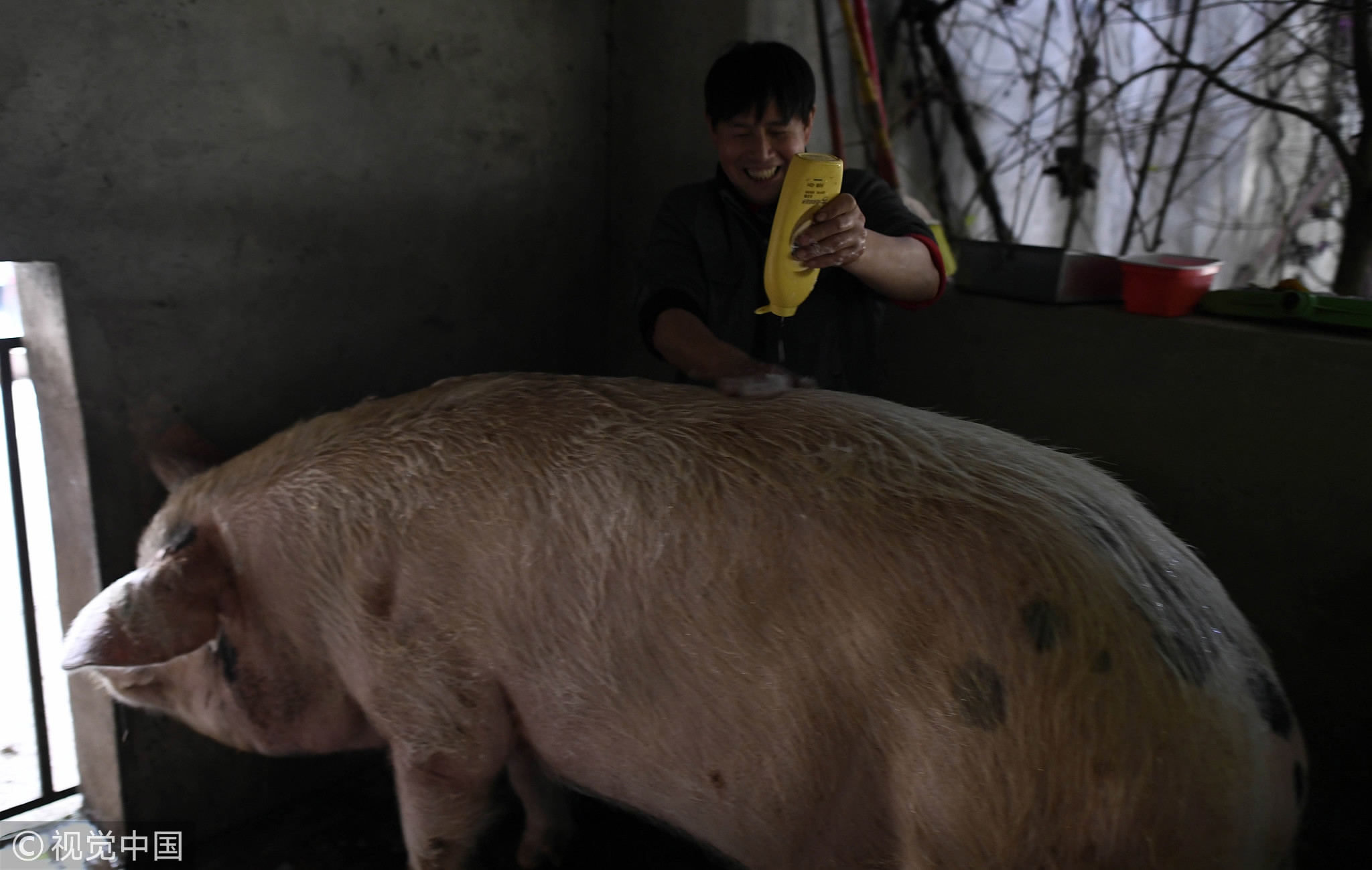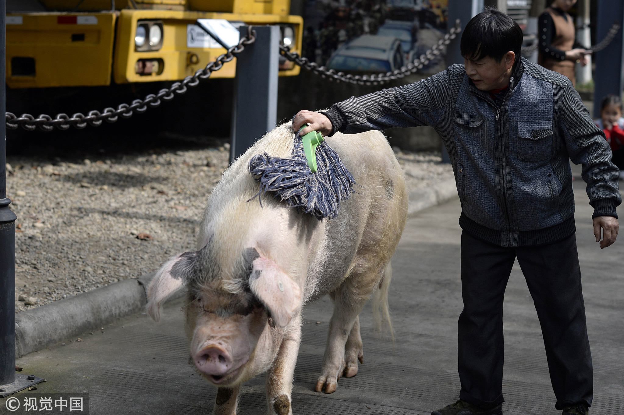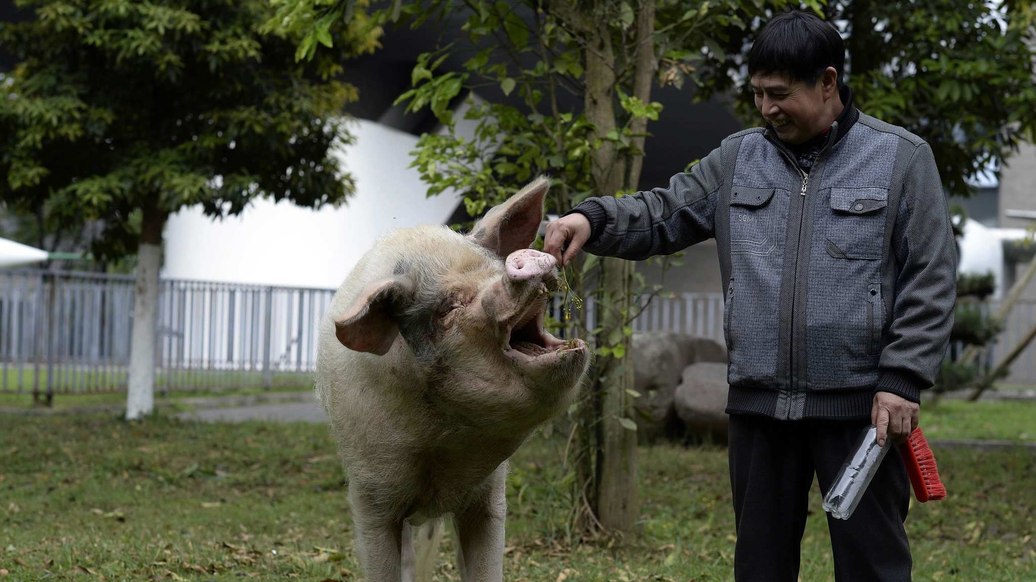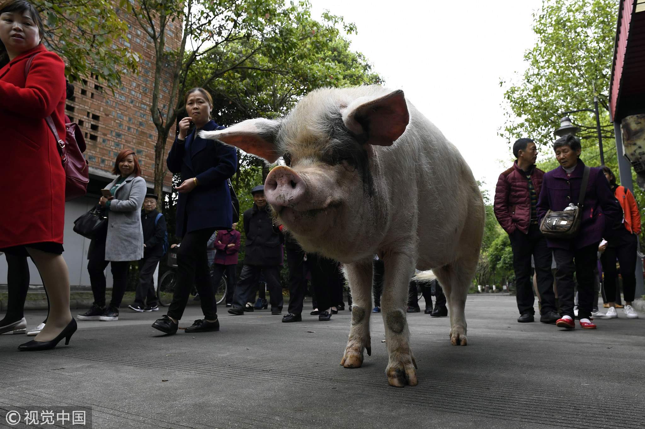 Raising a pig and raising Zhu Jianqiang is totally different, the pig’s current keeper Gong Guocheng told Chongqing Evening News. The animal goes for a walk every day at fixed times and eats customized meals. /VCG Photo