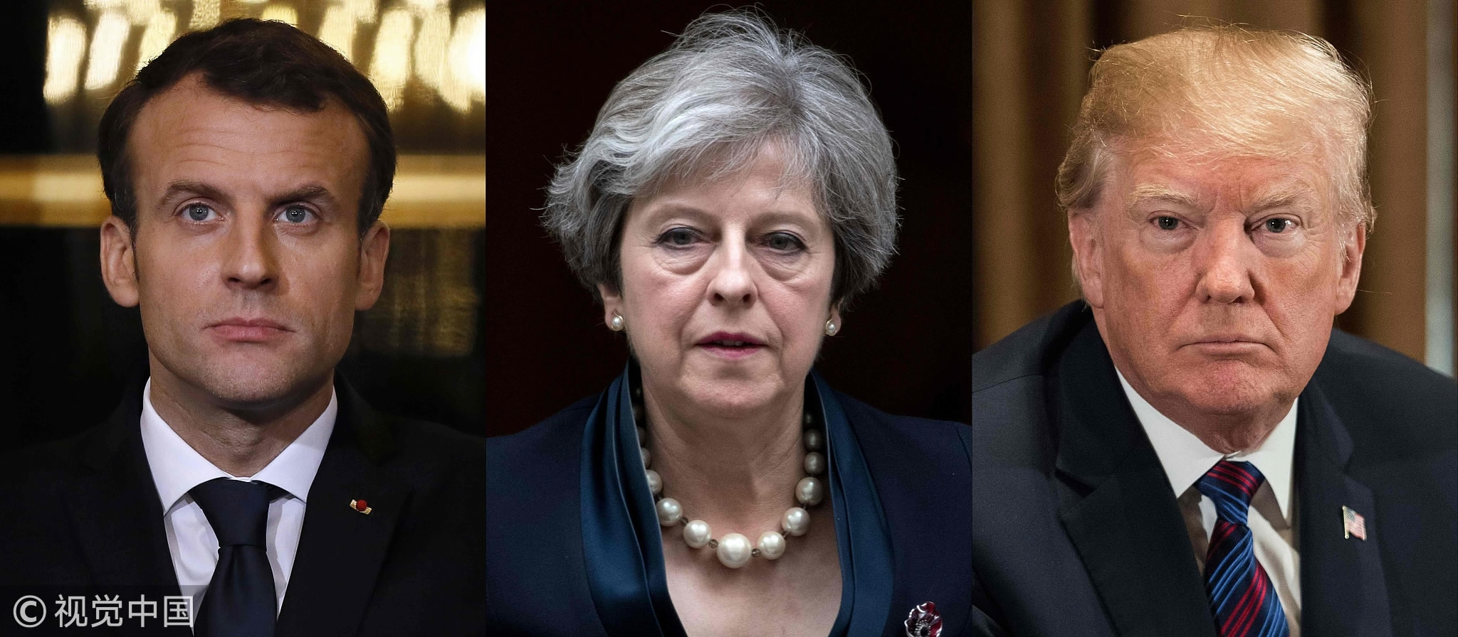 French President Emmanuel Macron, British Prime Minister Theresa May and US President Donald Trump (from L to R). /VCG Photo