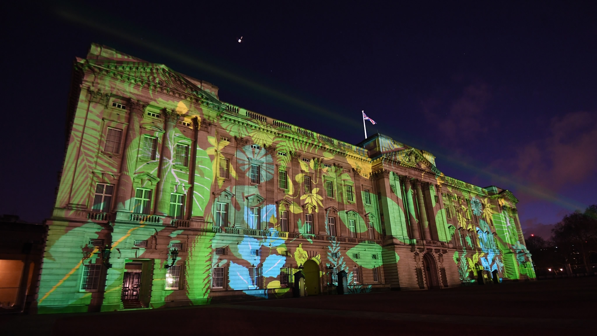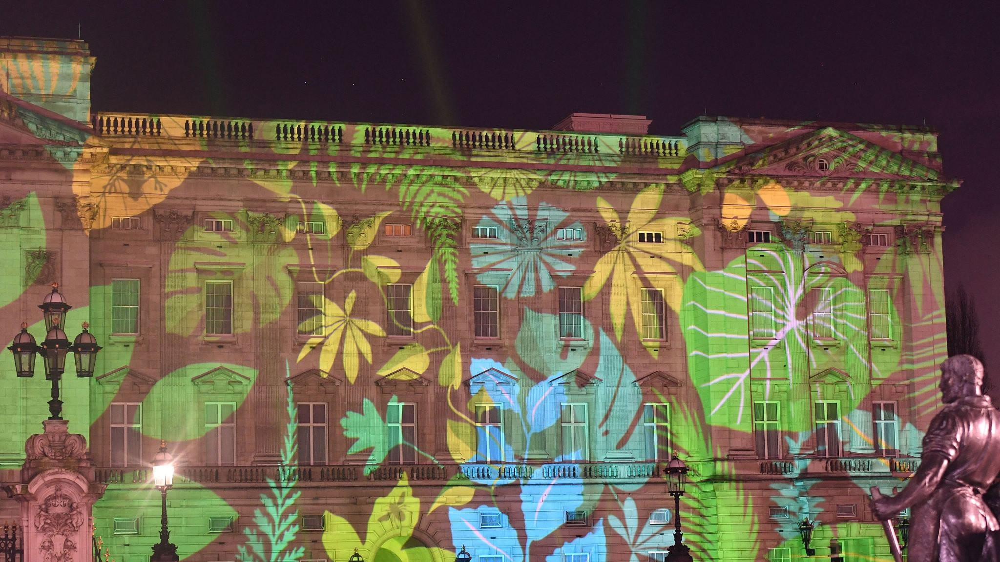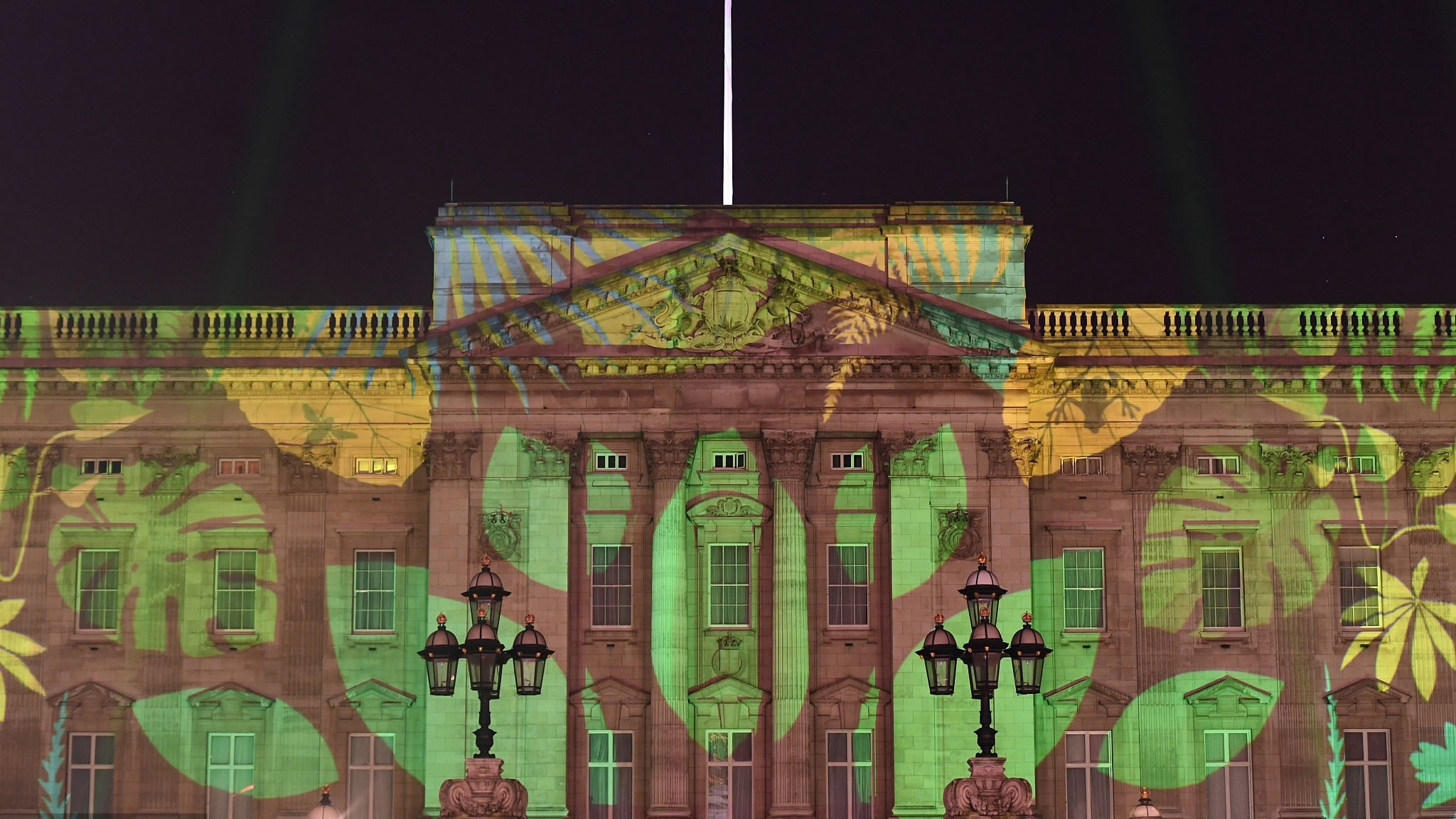 The Buckingham Palace was transformed to a rainforest scene on Sunday night to let people know about Her Majesty’s global conservation initiative, namely the Queen’s Commonwealth Canopy (QCC) project. /VCG Photo