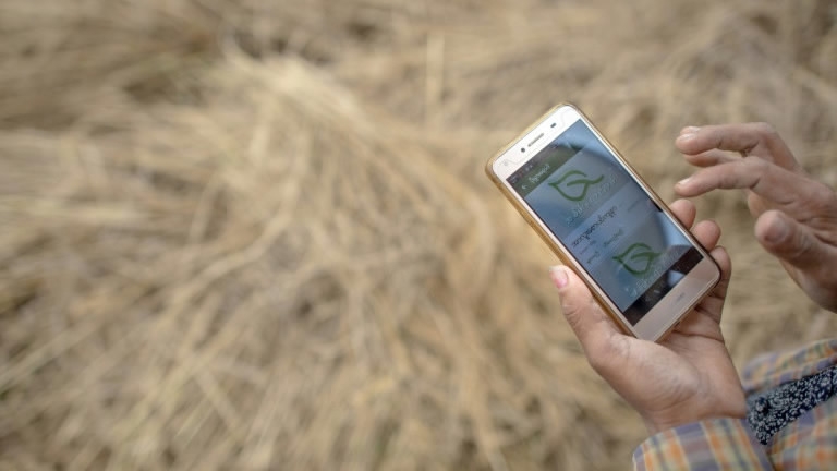 A free app on farmer San San Hla's smartphone is her new weapon in the war against the dreaded stem borer moth that blighted her rice paddy in southern Myanmar for the last two years.