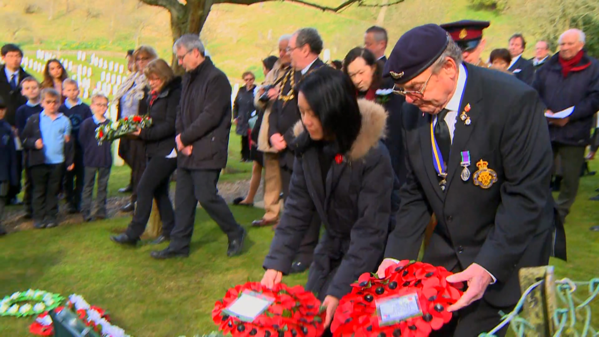 Folkestone commemoration ceremony for the Chinese Labour Corps at Shorncliffe Military Cemetery on March 14, 2018. /CGTN Photo