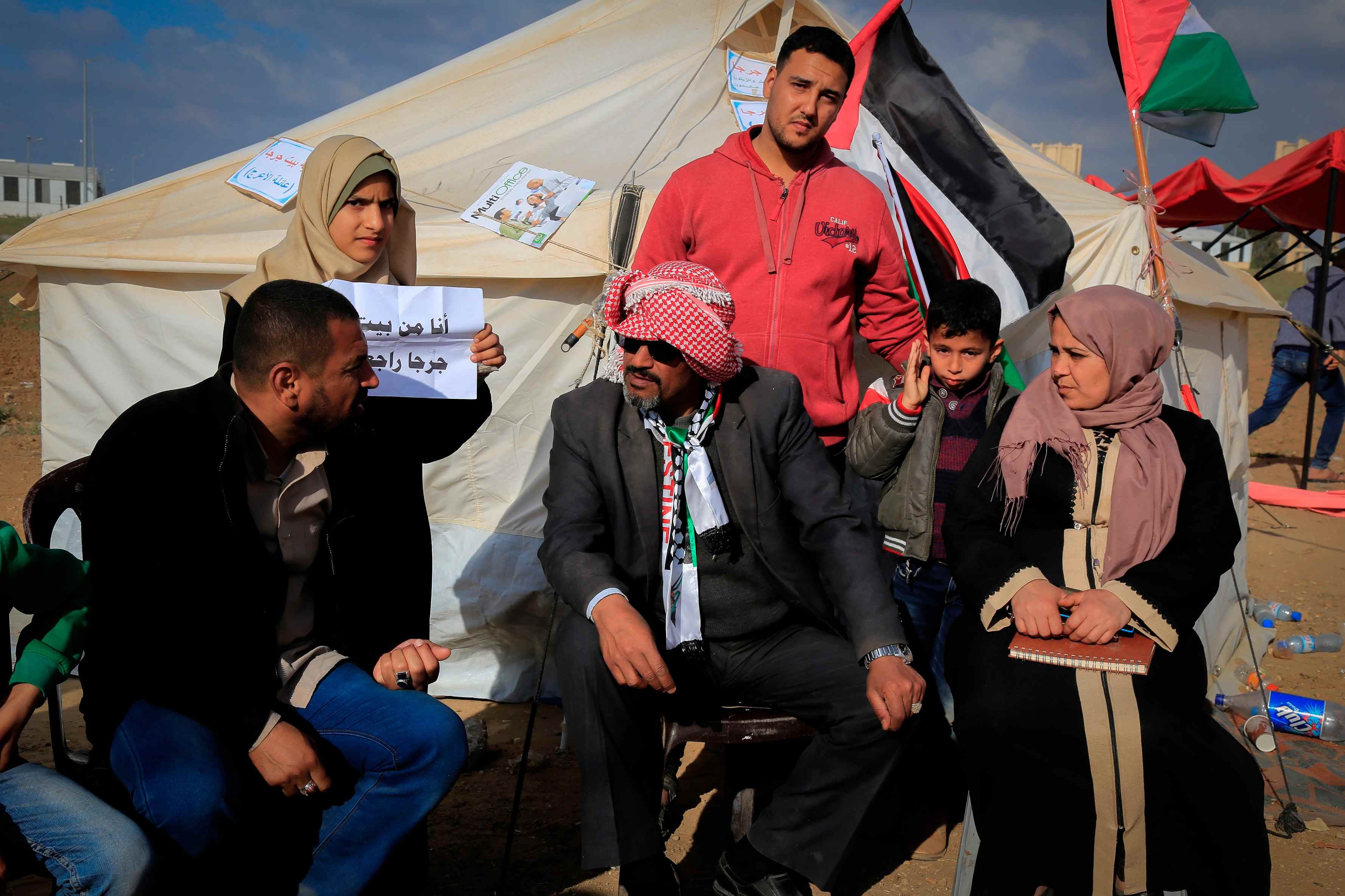 The Palestinian refugee Mahmoud Madi and his family are at the eastern border of Gaza with Israel, March 30, 2018. /CGTN Photo