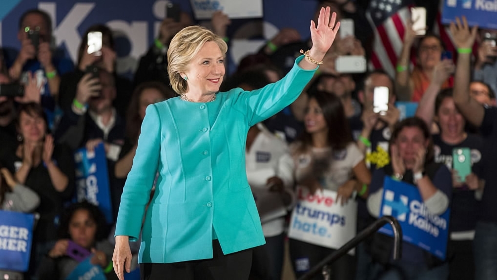 Hillary Clinton, 2016 Democratic presidential nominee, waves during a campaign rally in Manchester, New Hampshire, US, on November 6, 2016. /VCG Photo