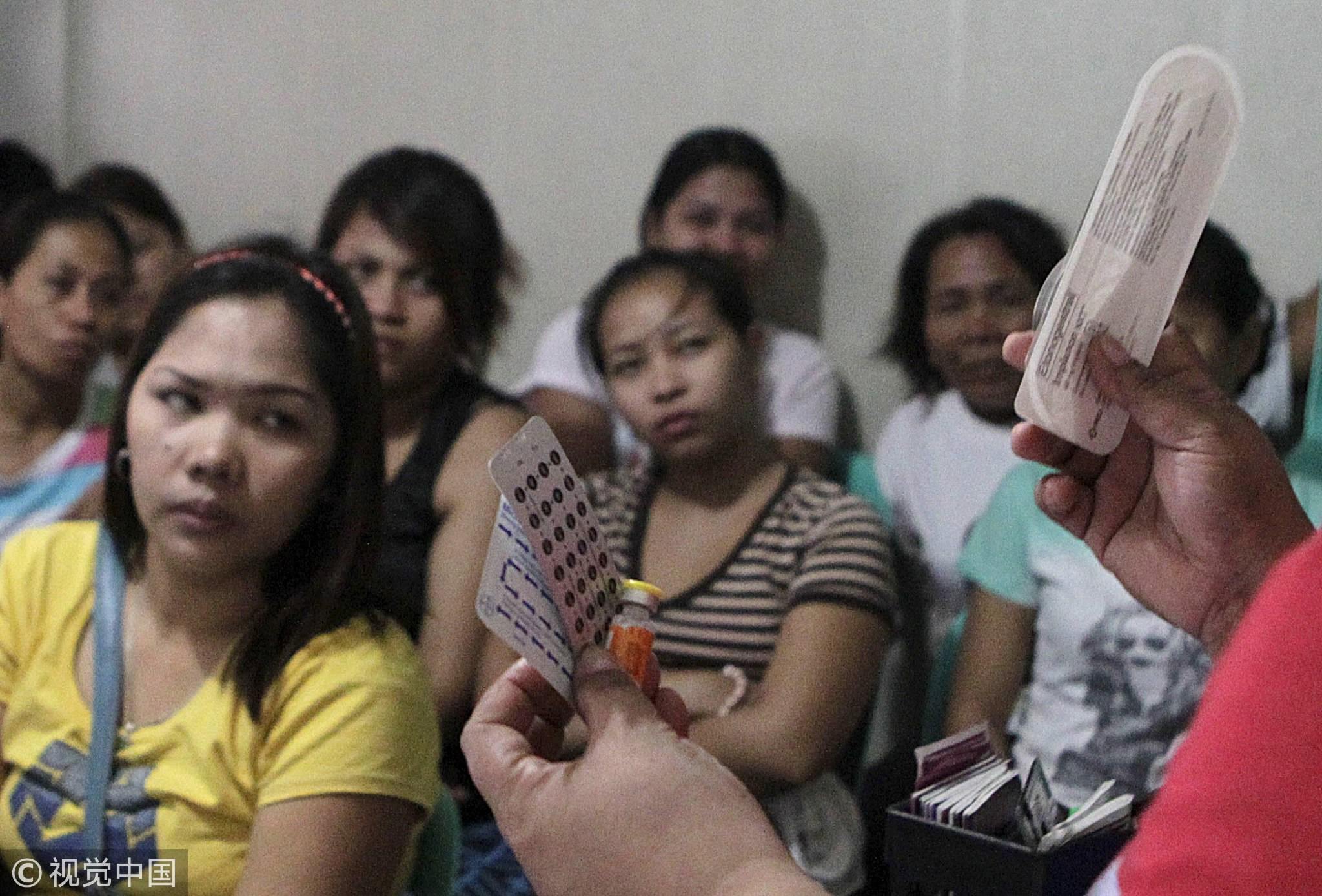 A community health worker holds up contraceptives during a lecture on family planning at a reproductive health clinic run by a Non-Governmental Organization (NGO) in Tondo city, Metro Manila, January 12, 2016. /VCG Photo