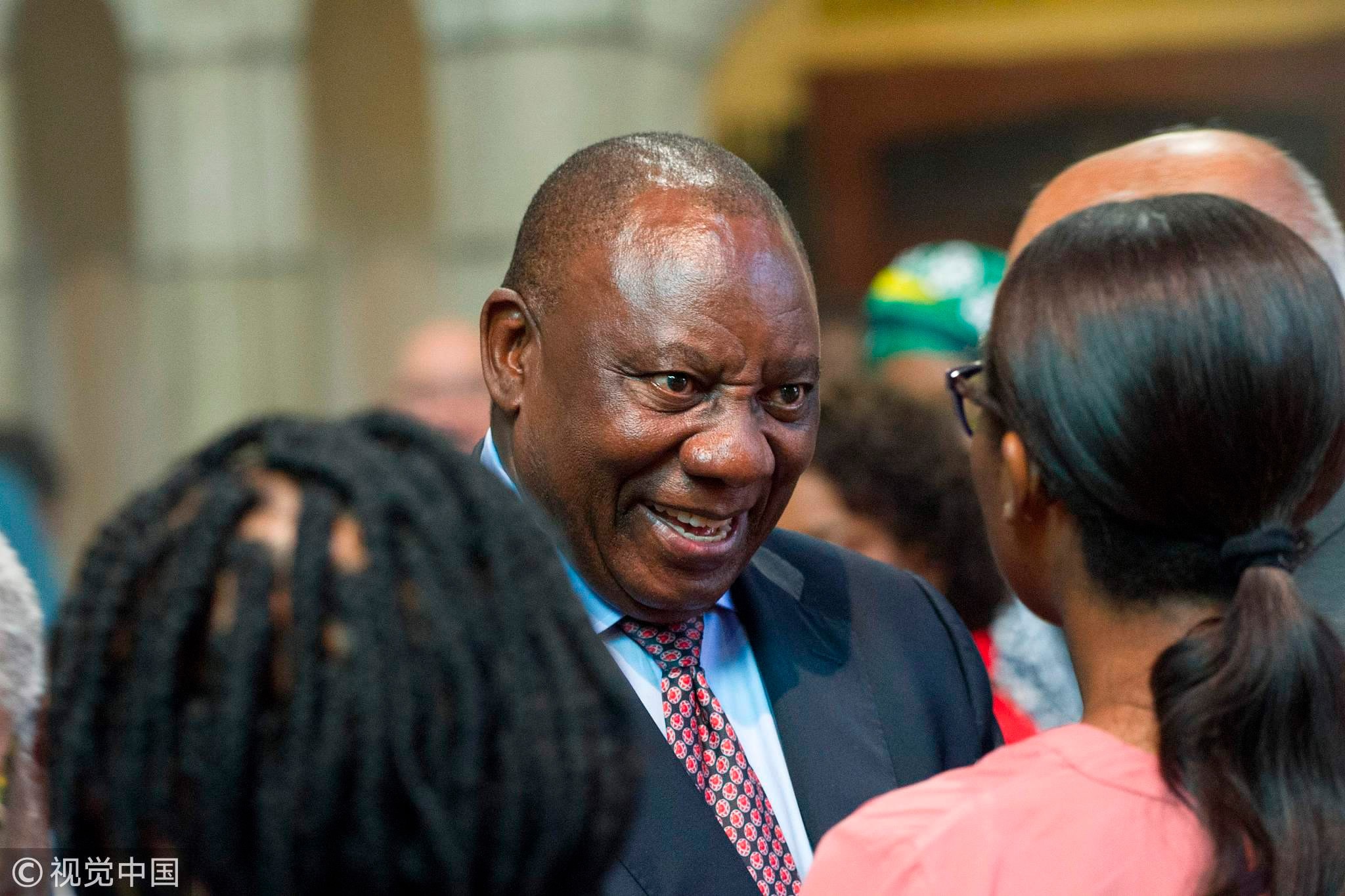 Cyril Ramaphosa (C), South African Deputy president, and newly elected president of the ruling African National Congress (ANC) greets people during a church service at St George’s Cathedral, Cape Town, on February 11, 2018./ VCG Photo