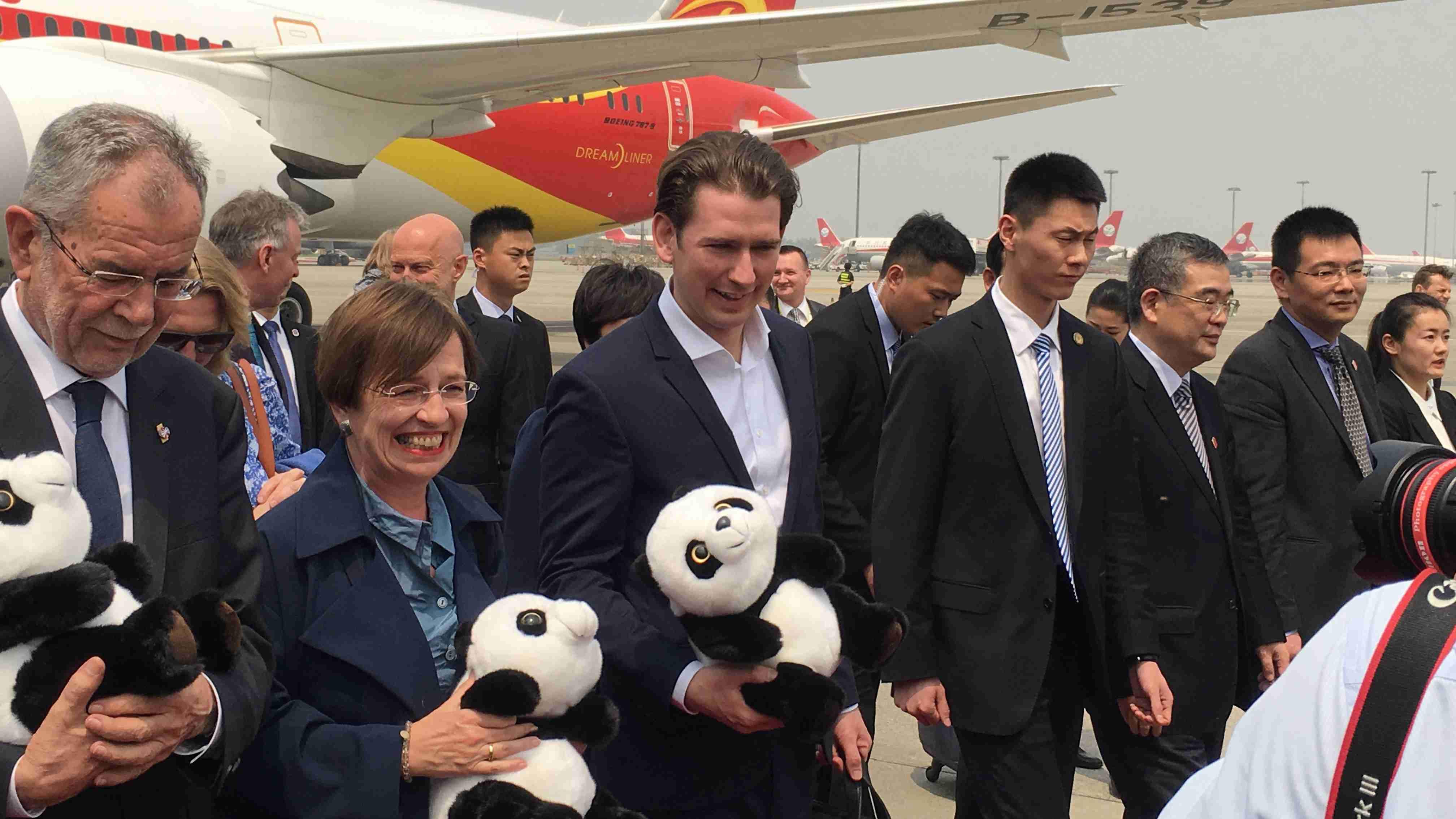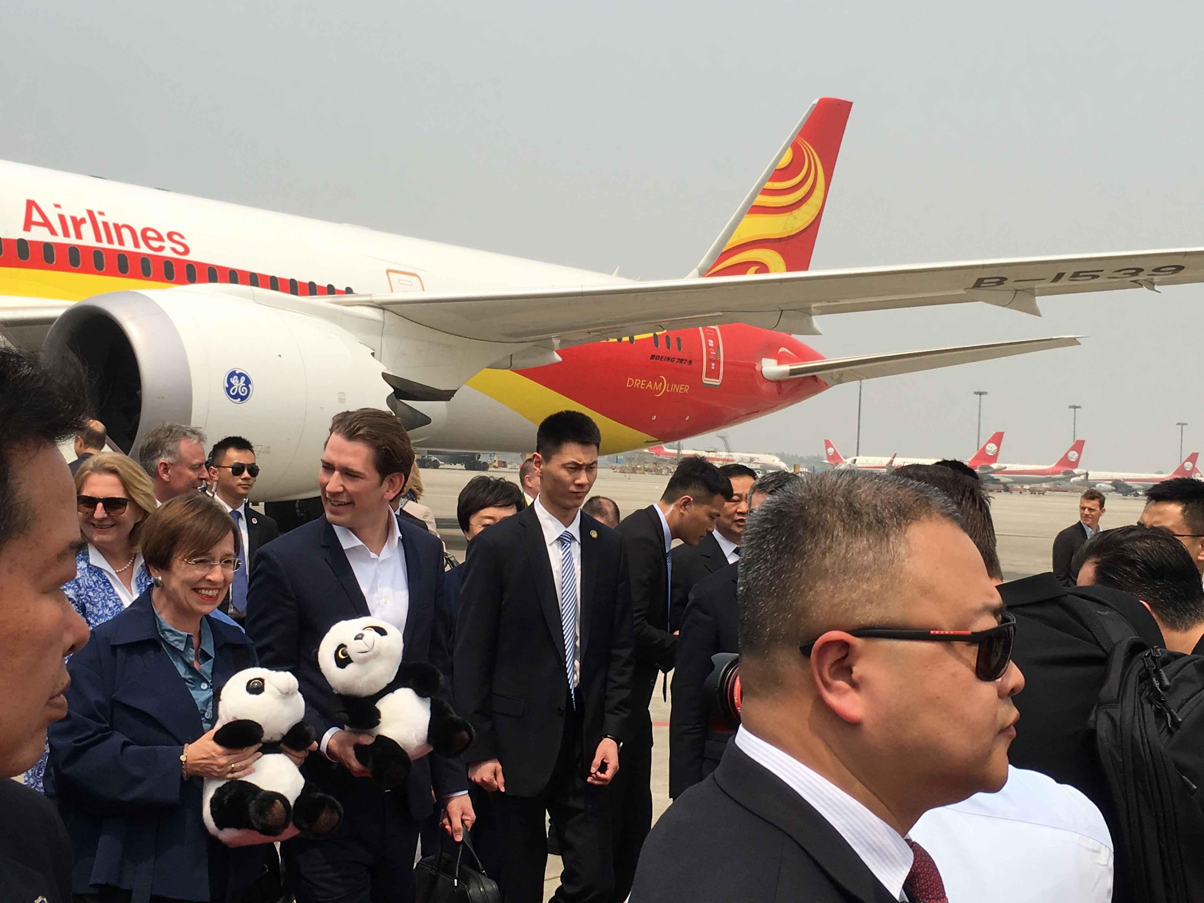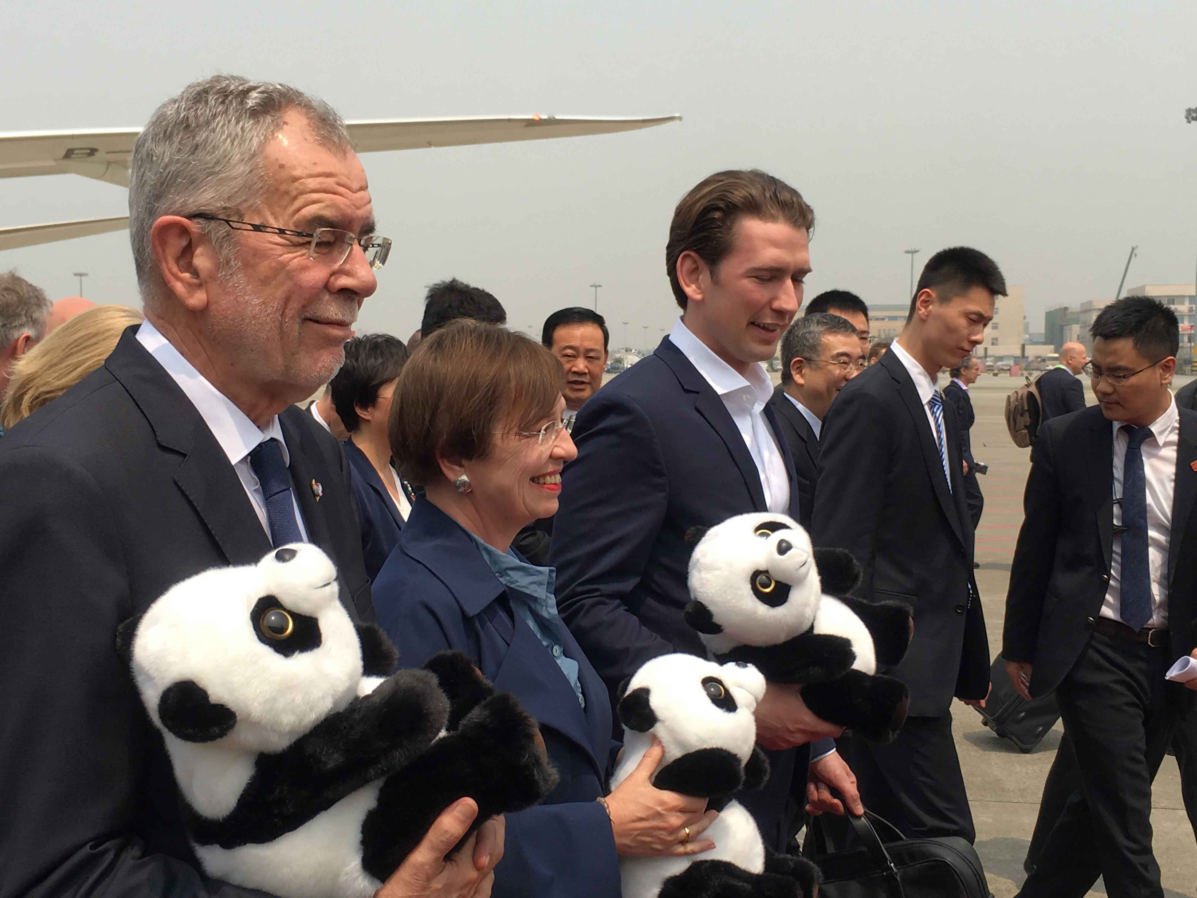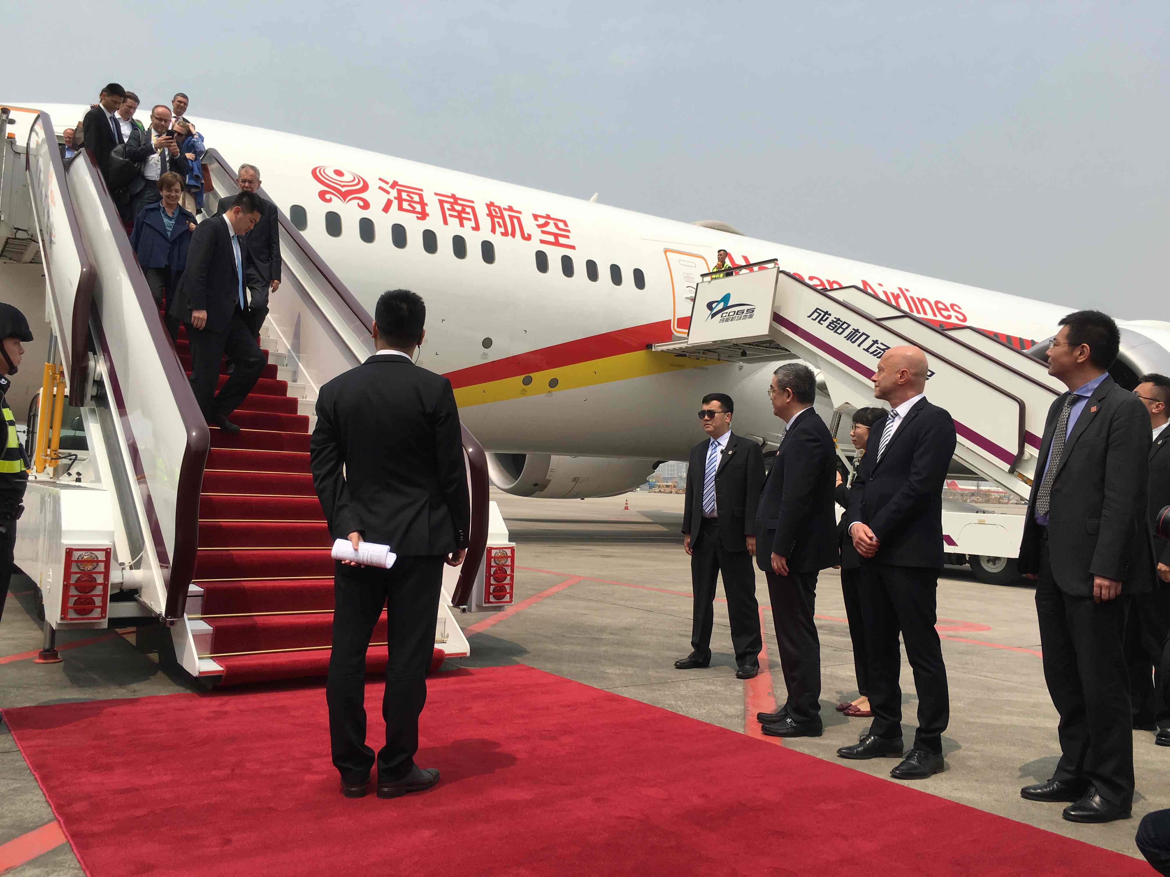 Austrian president Alexander Van der Bellen, who headed a large delegation including Austrian Chancellor Sebastian Kurz and members of the business community, arrived in Chengdu City, Sichuan Province, at 12:50 p.m. on Wednesday.
