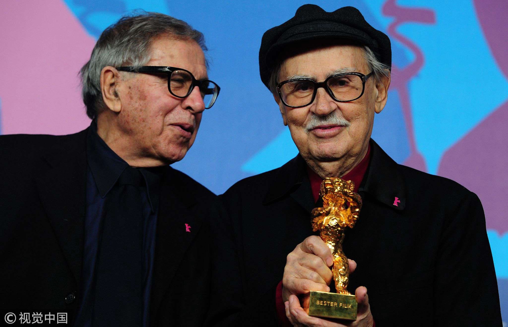 File of Italian directors Vittorio (R) and Paolo Taviani celebrate after receiving the Golden Bear prize awarded for their film "Caesar Must Die". /VCG Photo