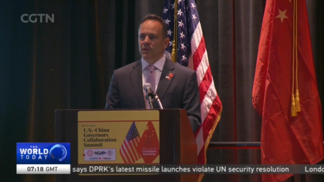 It's more than 860 kilometers away from Washington DC and a world away from Beijing here in the east central U.S. state of Kentucky. It's easy to find tranquility and optimism even during a time of trade tensions. That was the theme in the city of Lexington as governors and leaders gathered for the U.S.-China Governors Collaboration Summit. The Chinese ambassador to the U.S. set the tone with his opening comments.