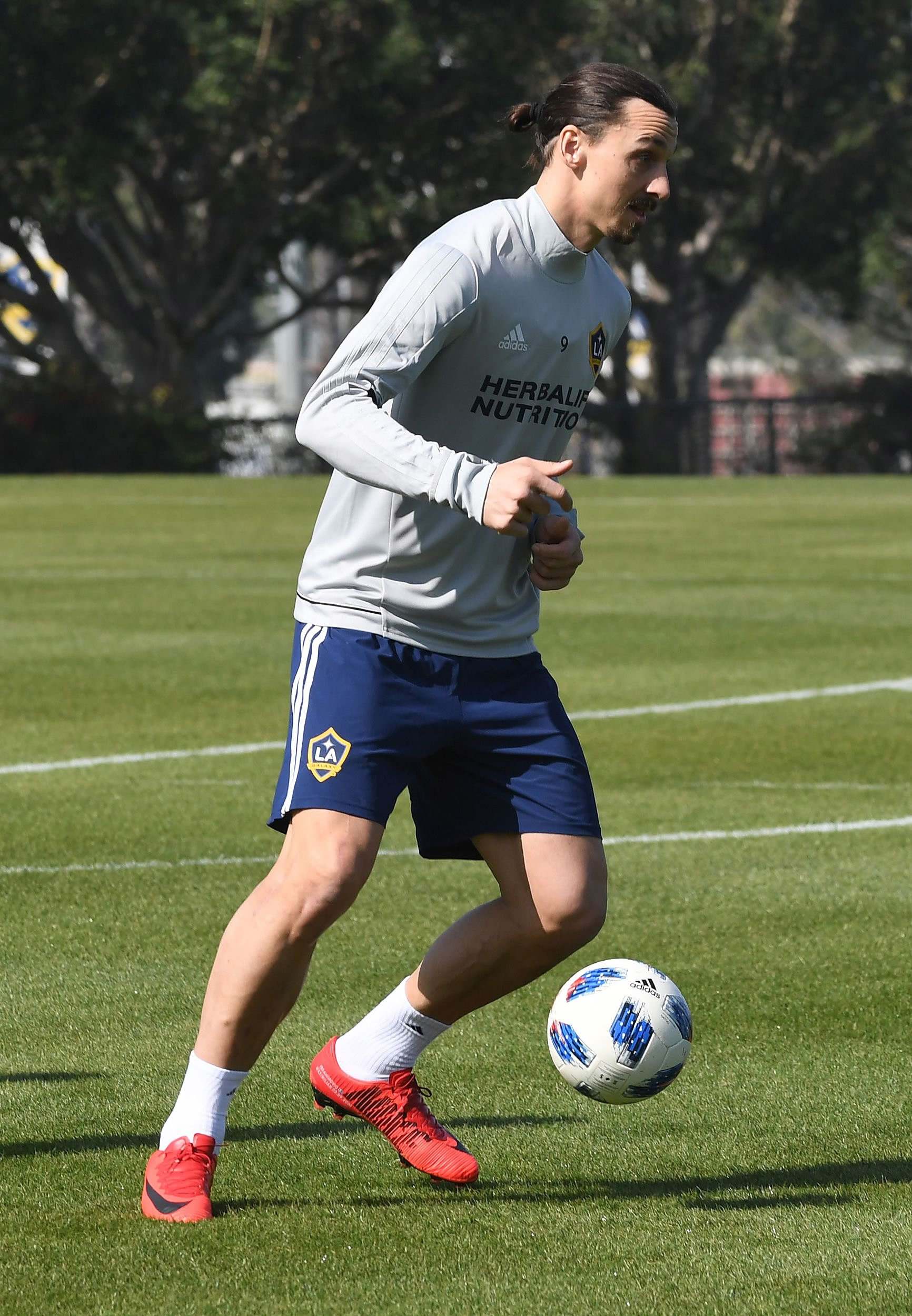 Zlatan Ibrahimovic takes part in the first training session with his new club LA Galaxy in Los Angeles, California, March 30, 2018. /VCG Photo