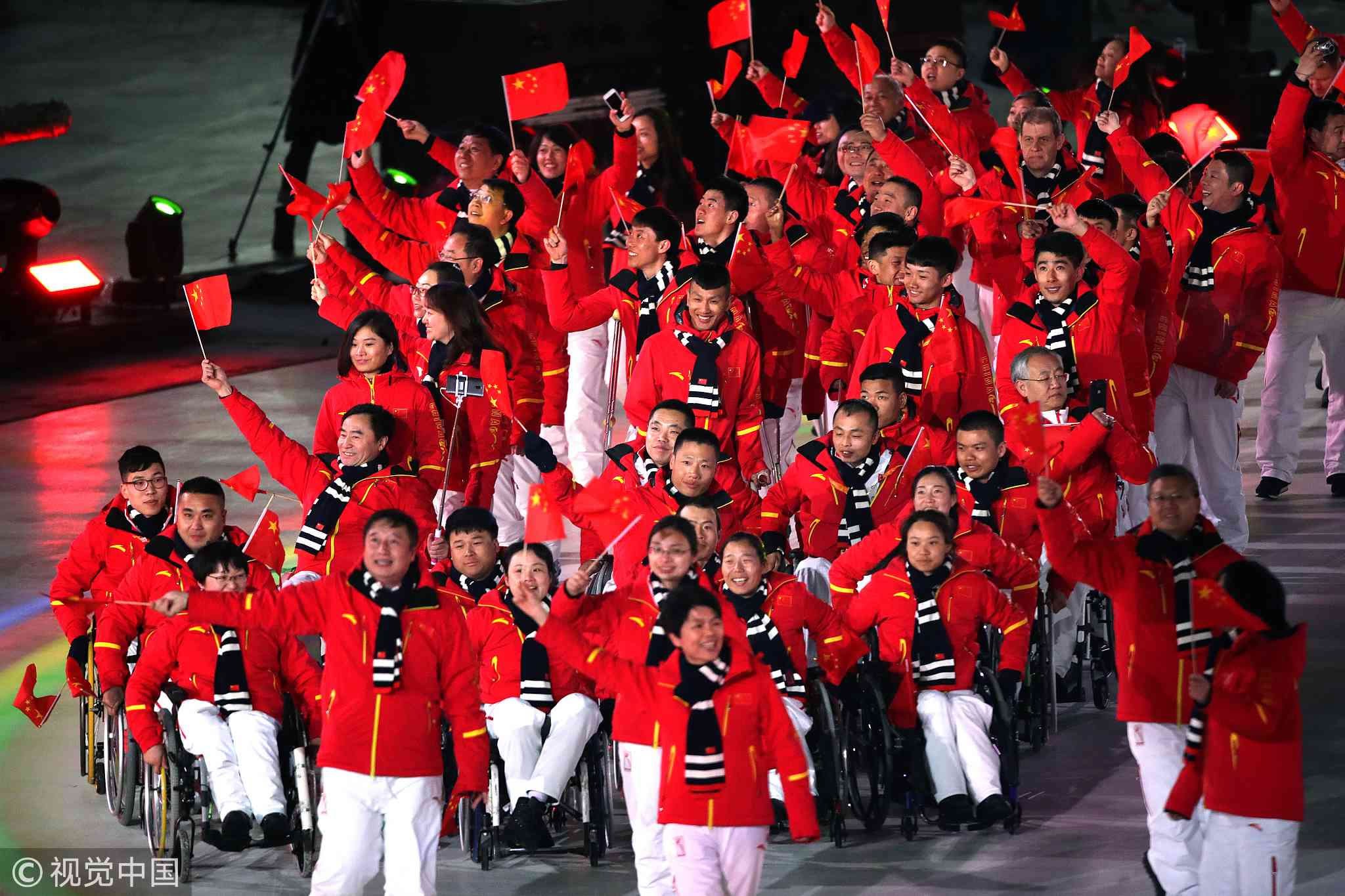 Chinese delegation parades during the opening ceremony at the PyeongChang 2018 Winter Paralympic Games. /VCG Photo