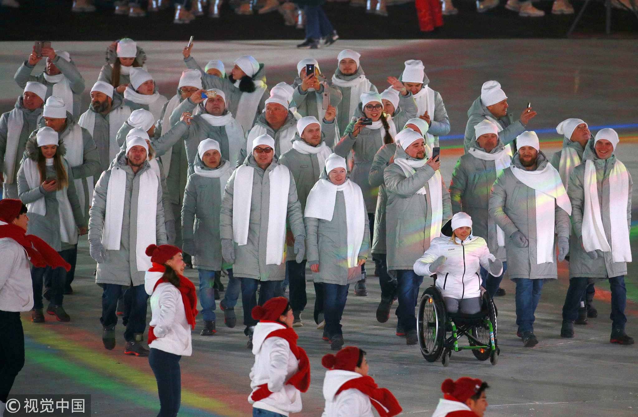 Neutral Paralympic Athletes (NPA) from Russia during the opening ceremony of the 2018 Winter Paralympic Games. /VCG Photo