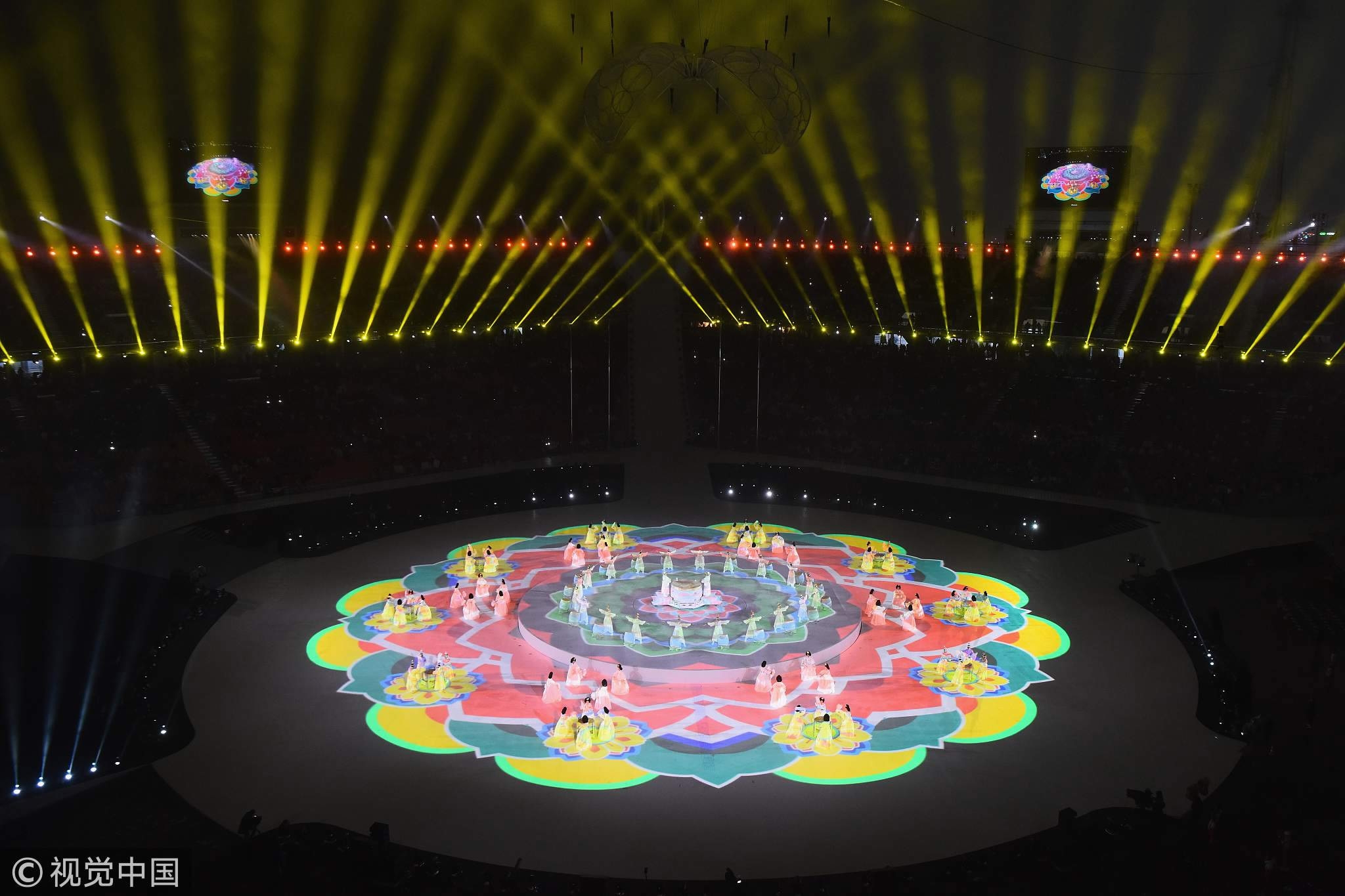 The opening ceremony reached a climax with the lighting of the moon-shaped porcelain cauldron, as well as the fireworks around the arena.